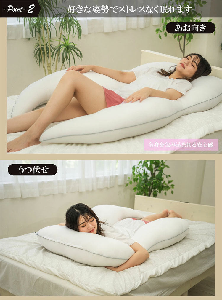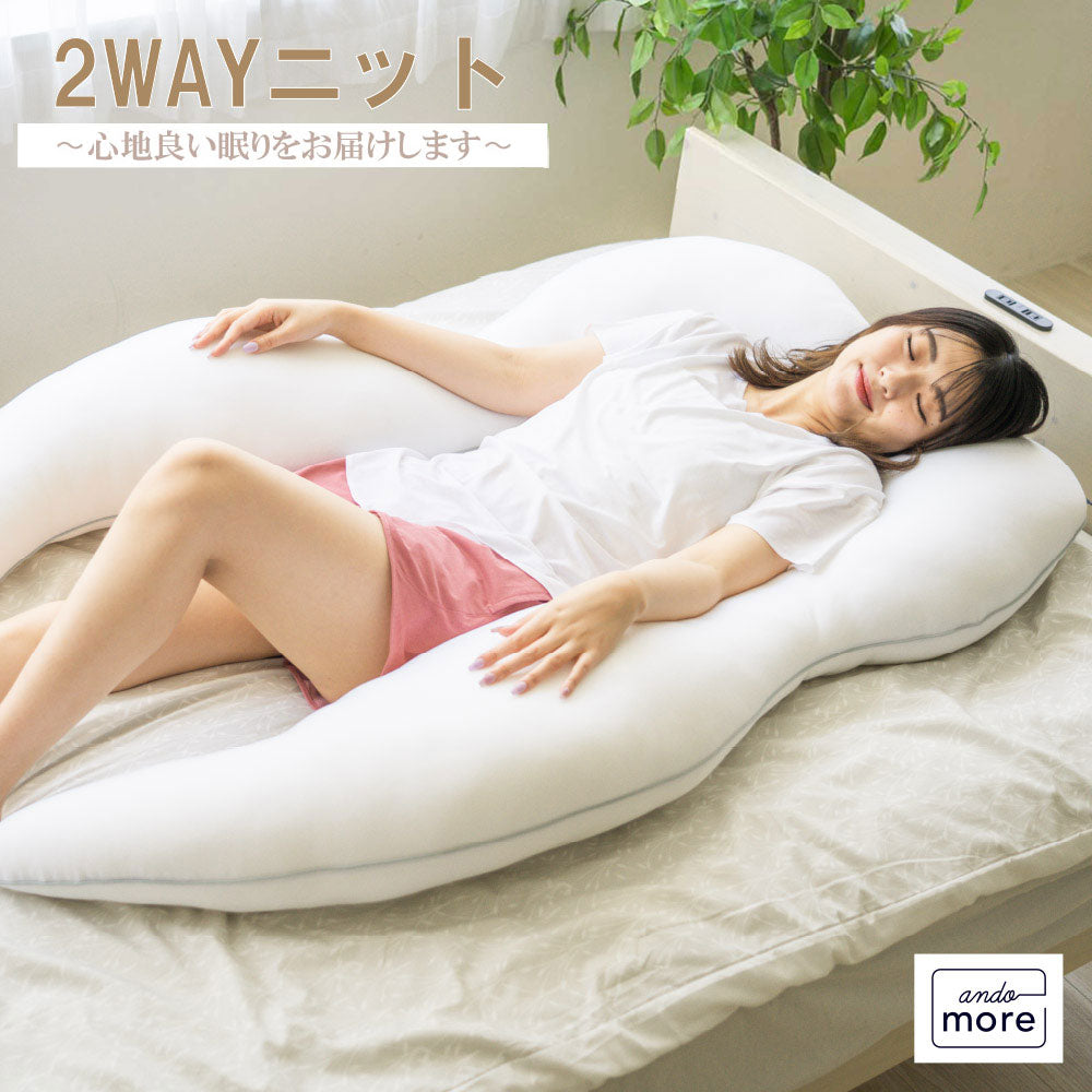 【機能クッションブランドandmore】2wayニット抱き枕 U字型 抱き枕 枕 ヌードクッション ニット 帝人クリスター 中材 羽毛 背あて クッション 横向き あお向き うつ伏せ 背もたれ 腰痛 肩こり 首こり(代引不可)