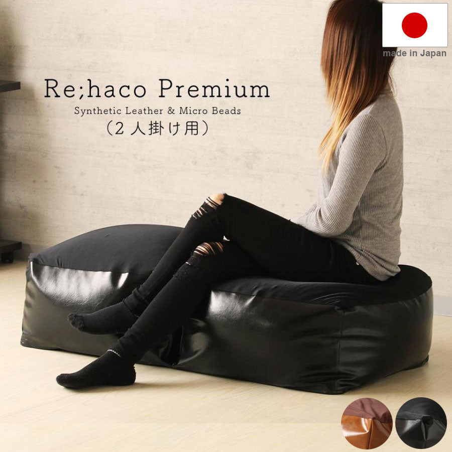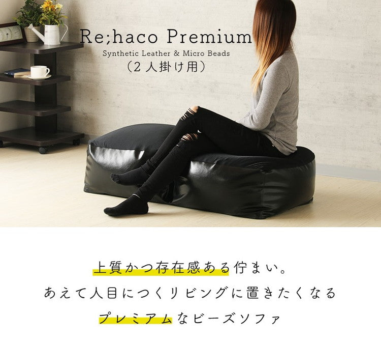 ビーズクッション レザー調 日本製 上質 厚手PVCレザー ビーズソファ おしゃれ マイクロビーズ 四角 日本製 国産 2人掛け インテリア 補充 Re;haco Premium(代引不可)
