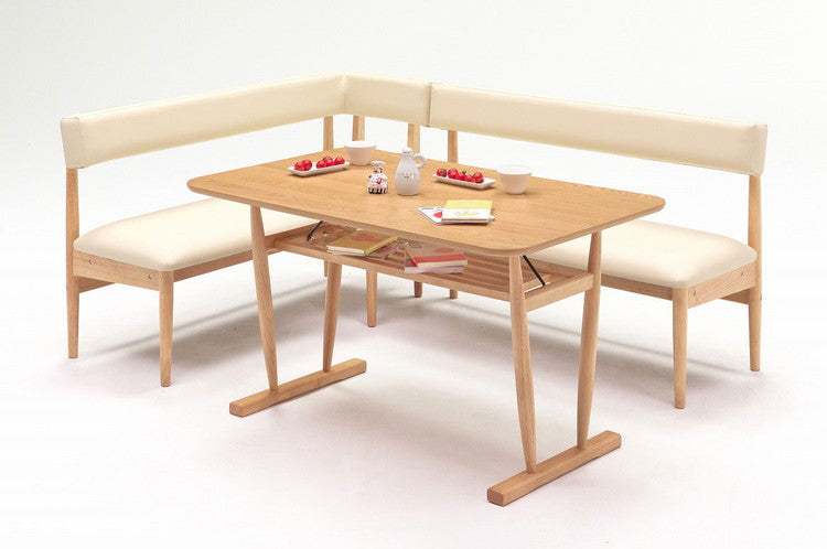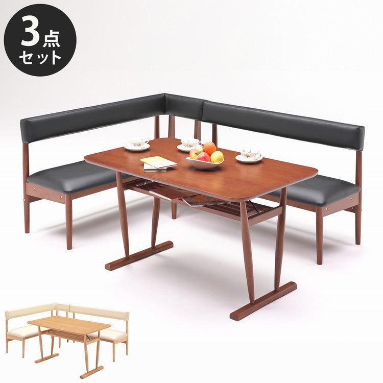 L字ダイニング3点セット テーブル幅115cm ベンチ幅123cm~131cm L字 L字チェア 木目調 リビング ダイニングテーブルセット 4~5人掛け(代引不可)