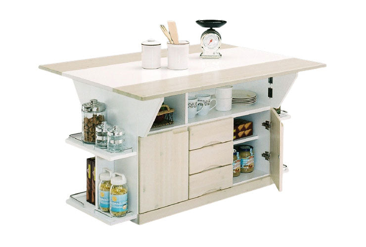 キッチンカウンター キッチンワゴン バタフライテーブル 幅120 奥行90 高さ70 両バタワゴン 国産 大川家具 ナチュラル 伸長式(代引不可)