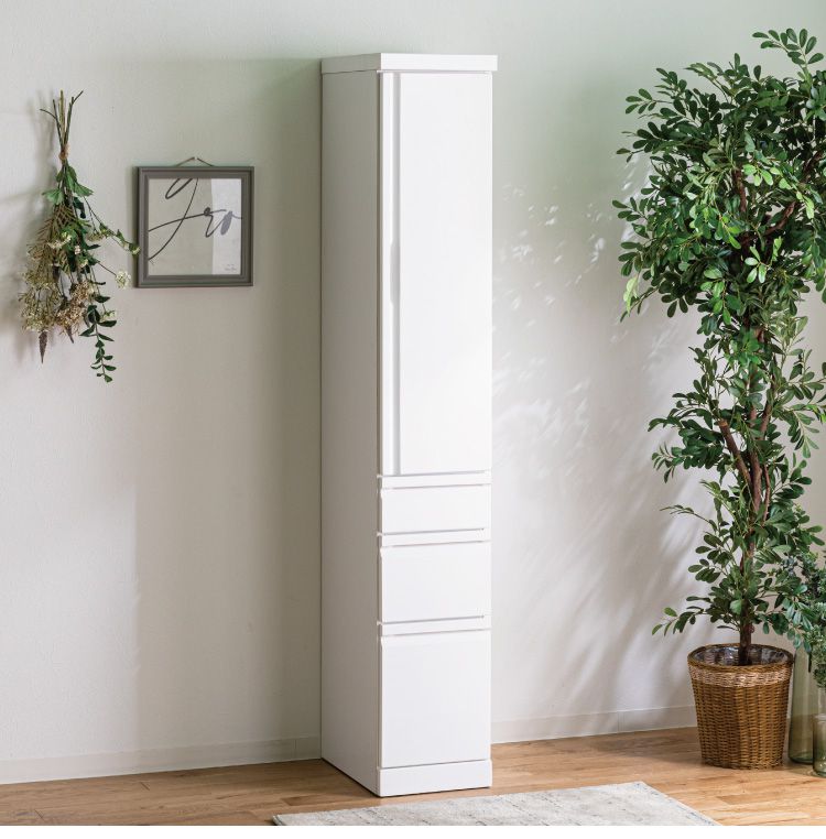 食器棚 完成品 隙間収納 国産 大川家具 幅30 高さ180 キッチンボード ホワイト エナメル塗装 おしゃれ 北欧(代引不可)