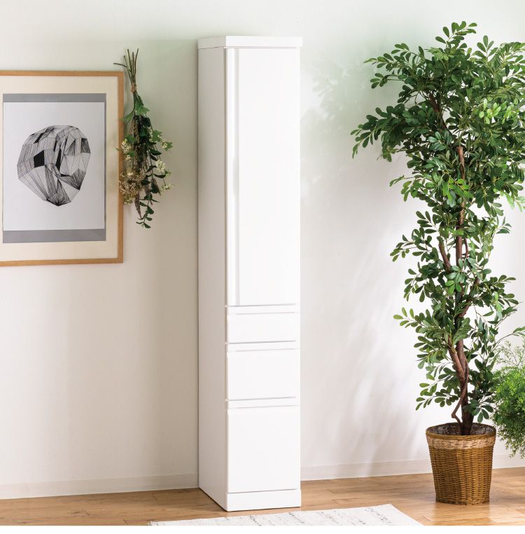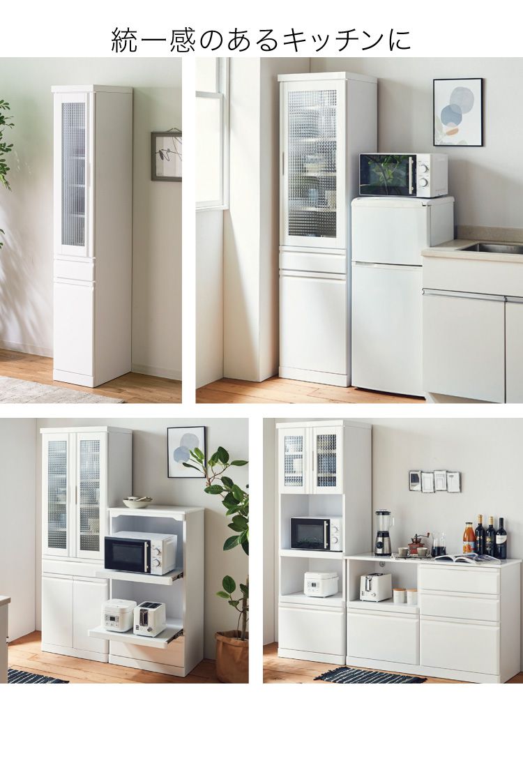 食器棚 完成品 隙間収納 国産 大川家具 幅45 高さ180 キッチンボード ホワイト エナメル塗装 おしゃれ 北欧(代引不可)