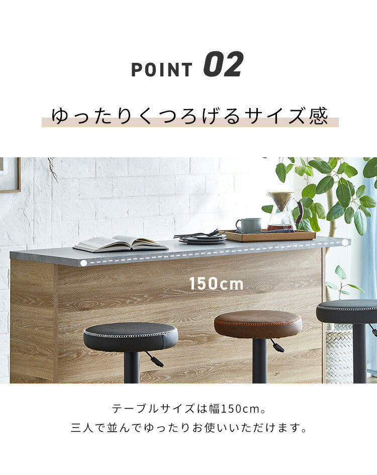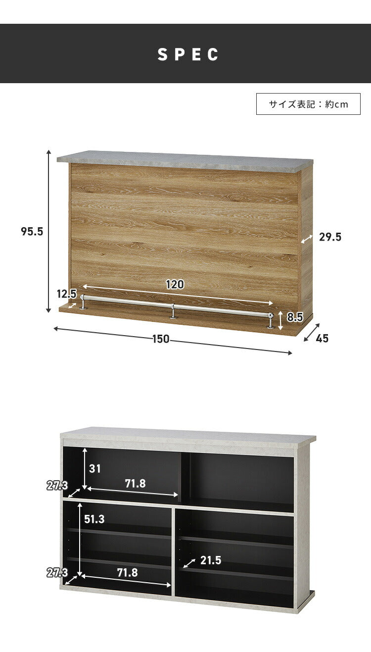 バーカウンター 幅150 石目調 木目 国産 モダン カウンター カウンターテーブル ブラウンナチュラル グレー キッチン 収納 大容量 ハイカウンター ダイニング リビング(代引不可)