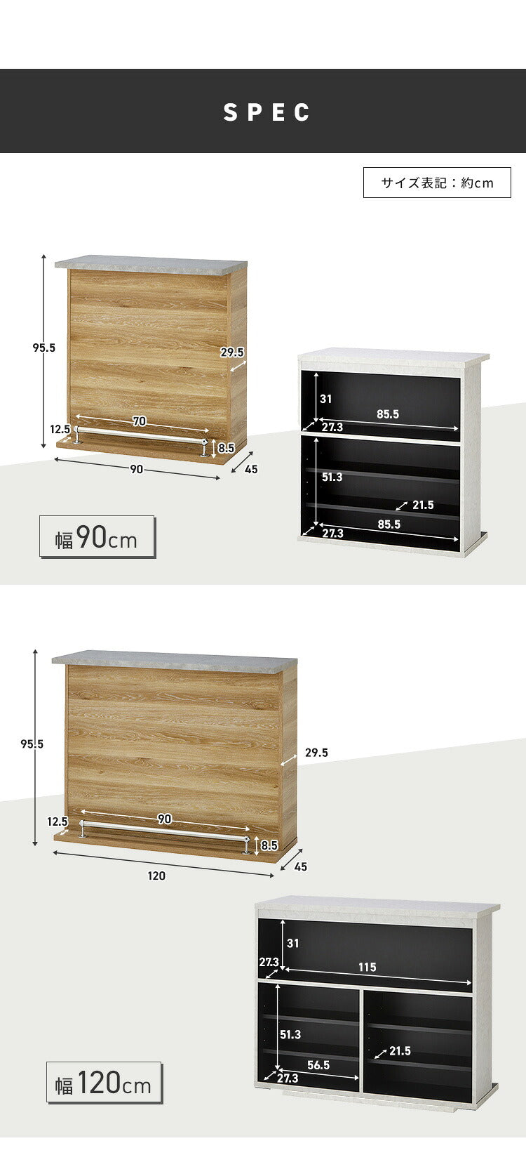 [バーカウンター120]幅120×奥行45×高さ95.5cm