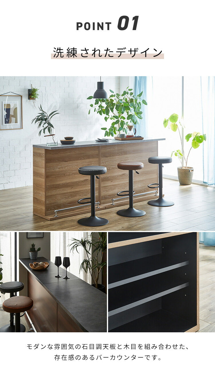 バーカウンター セット 幅90 幅120 L字 石目調 木目 国産 モダン カウンター カウンターテーブル ブラウンナチュラル グレー キッチン 収納 大容量 ハイカウンター(代引不可)