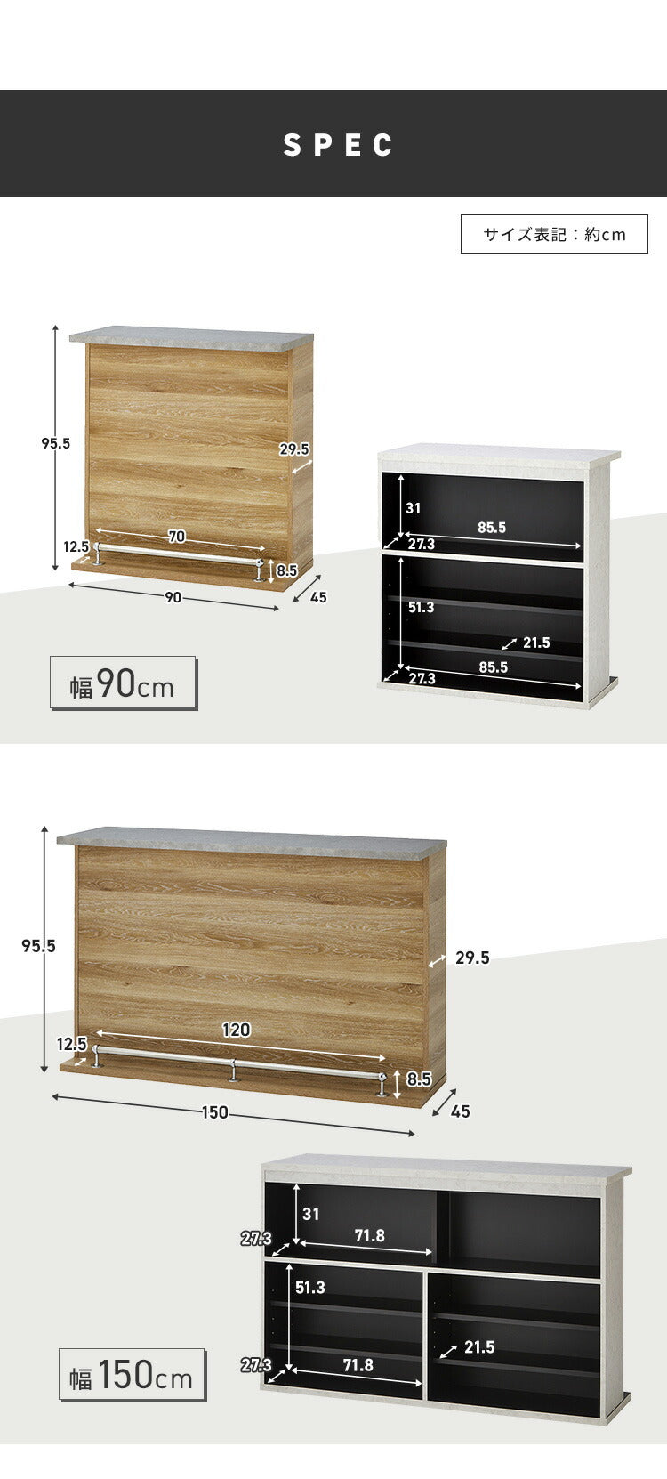 [バーカウンター150]幅150×奥行45×高さ95.5cm