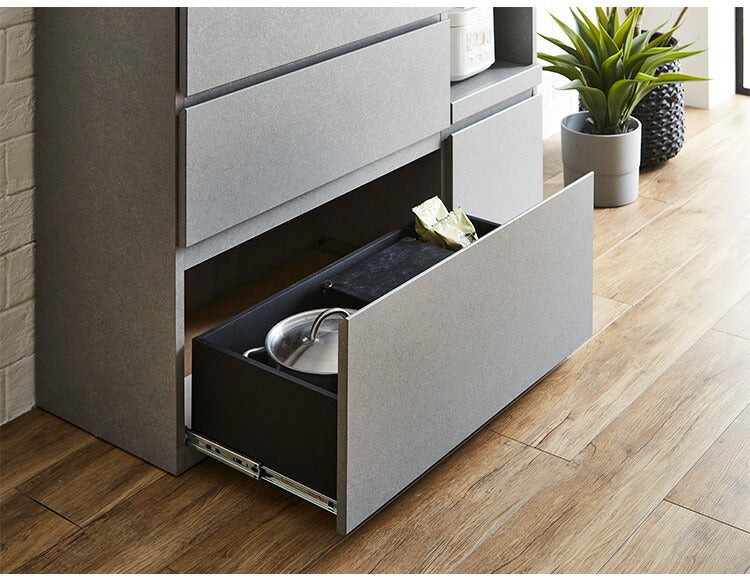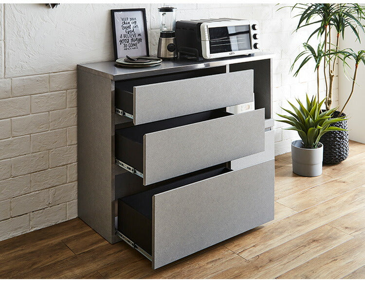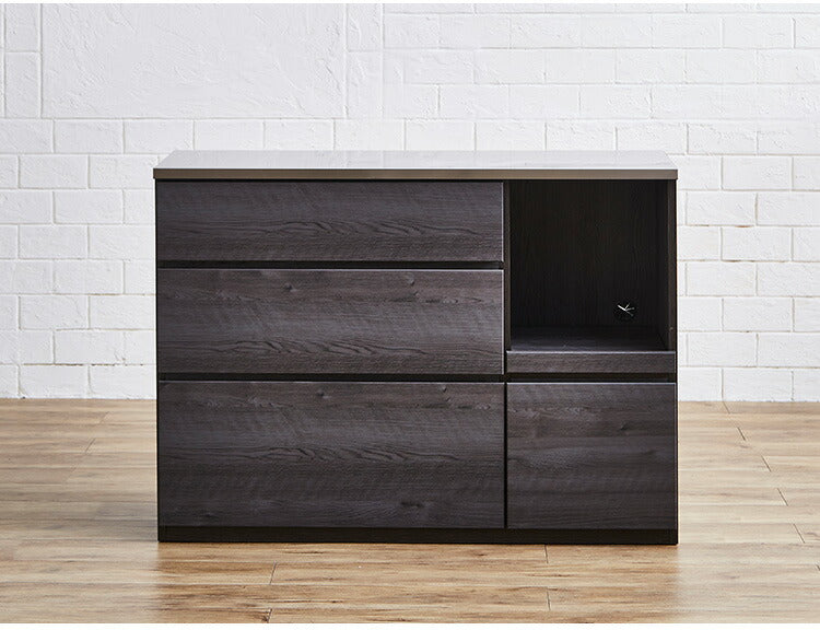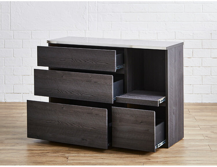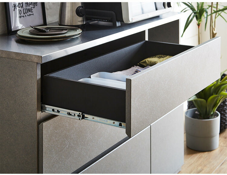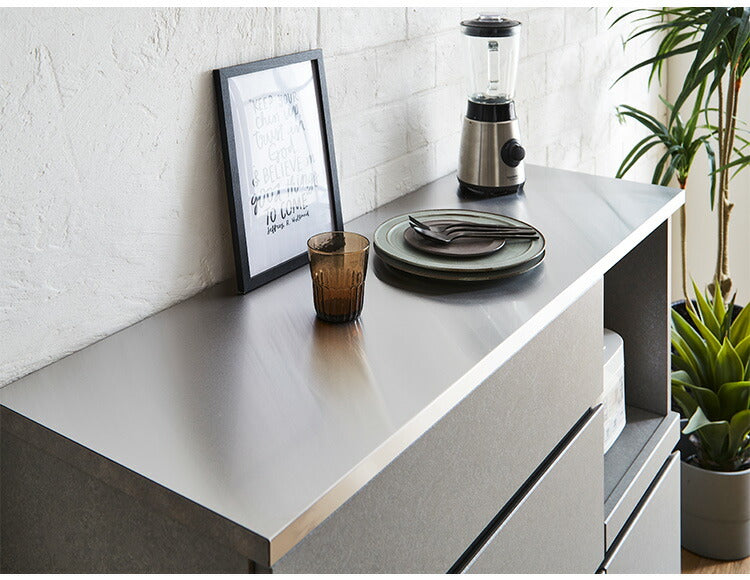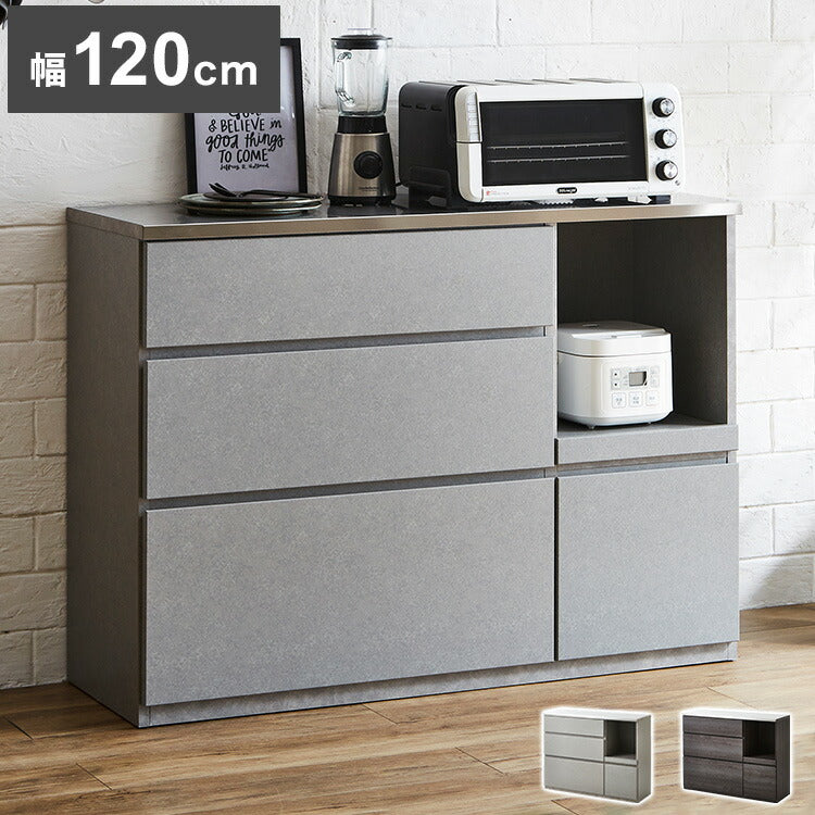 キッチンカウンター 間仕切り 幅120 奥行41 高さ90 ステンレス天板 完成品 セラミック調 グレー 背面化粧 フルオープンレール レンジ台(代引不可)