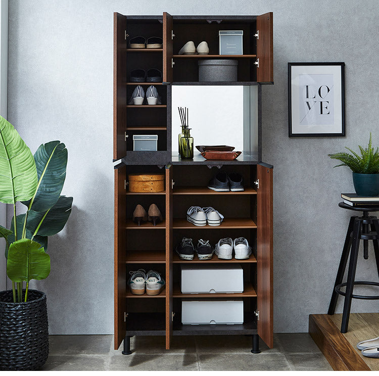 シューズボックス ハイタイプ 幅75cm ミラー付き 国産 完成品 奥深 靴箱 下駄箱 シューズラック 玄関 収納 大川家具 おしゃれ 北欧 玄関収納(代引不可)