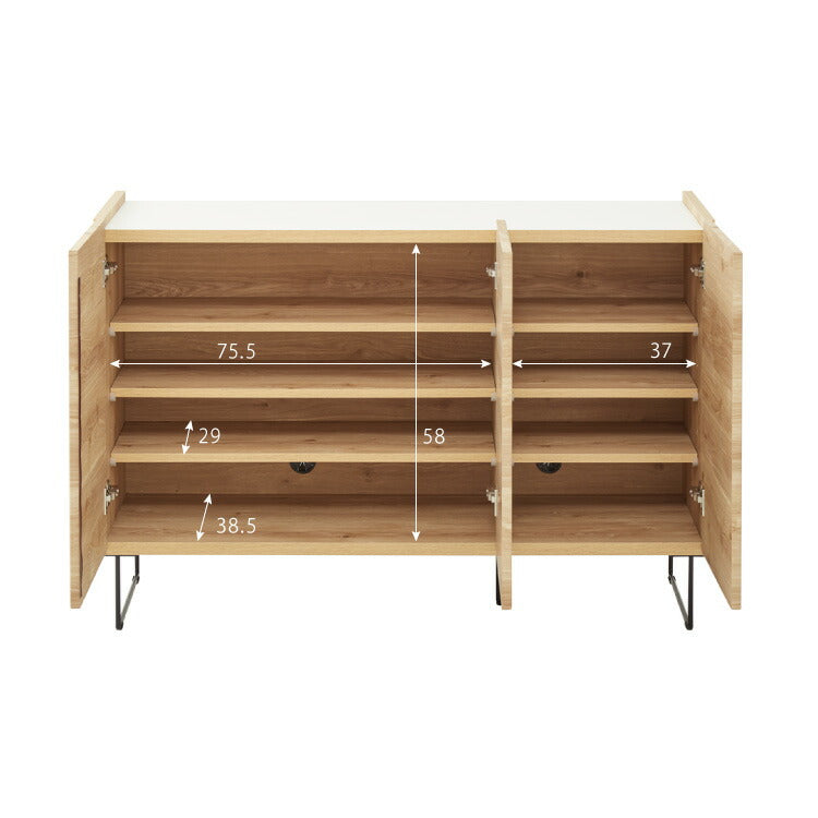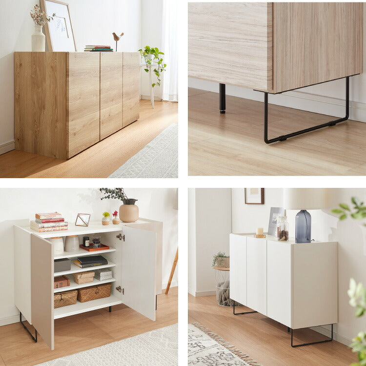 キャビネット 幅120 白 オーク 北欧 木製 おしゃれ カウンター 間仕切り 完成品 国産 背面化粧 ナチュラル 木目 オレフィン 脚付き 収納 チェスト リビング 収納 スチール脚(代引不可)
