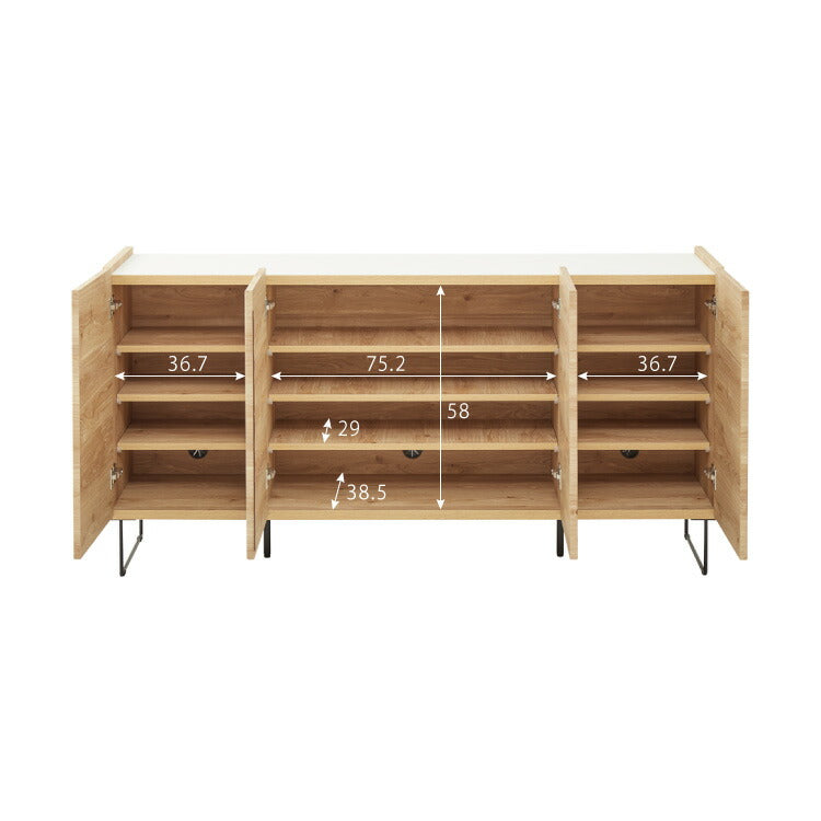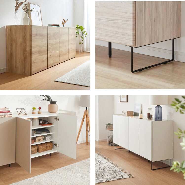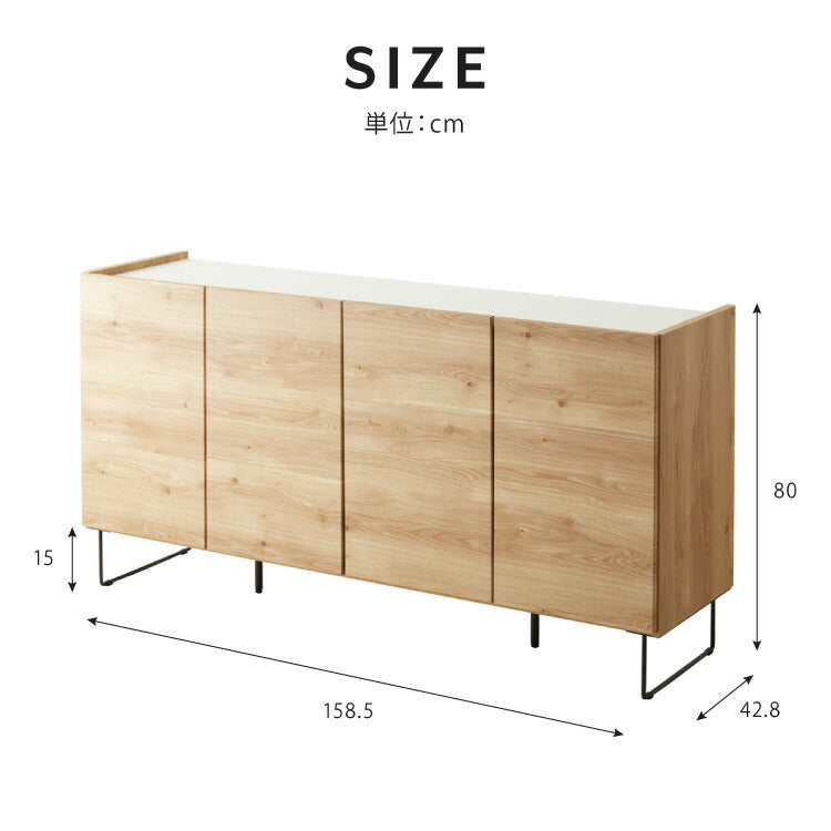 キャビネット 幅160 白 オーク 北欧 木製 おしゃれ カウンター 間仕切り 完成品 国産 背面化粧 ナチュラル 木目 オレフィン 脚付き 収納 チェスト リビング 収納 スチール脚(代引不可)