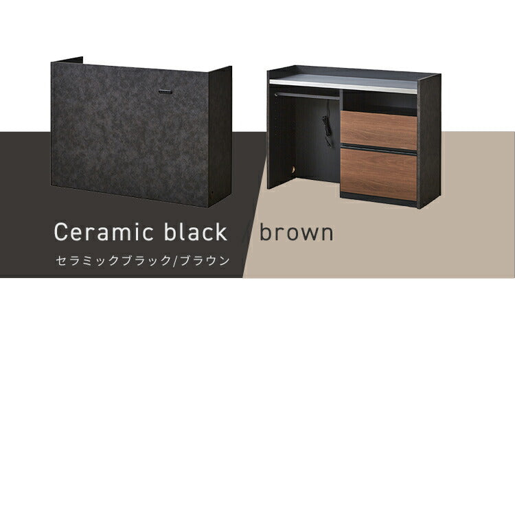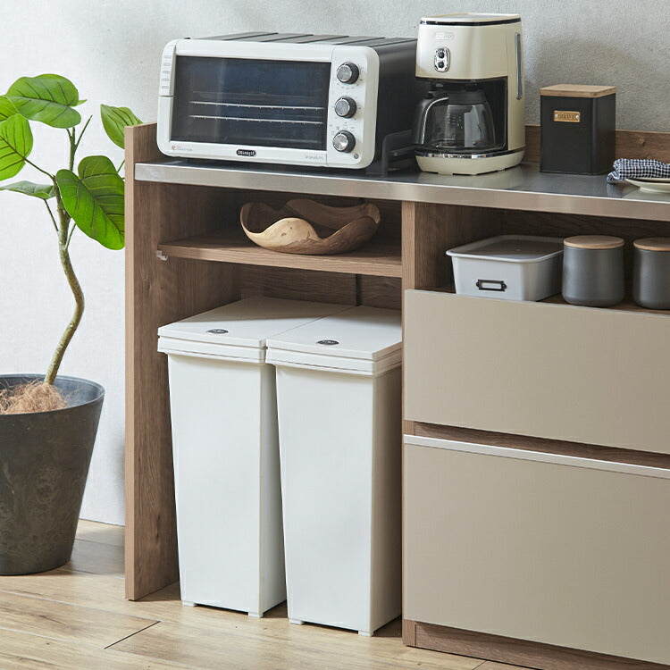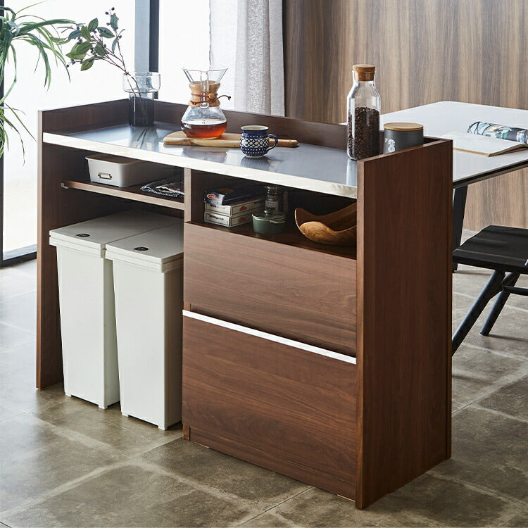 手元を隠す キッチンカウンター ダストボックス 間仕切り 完成品 幅120 ステンレス天板 収納 日本製 ゴミ箱上ラック コンセント付き 食器棚 キッチンボード グレー オーク ブラウン(代引不可)