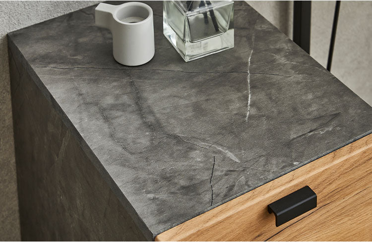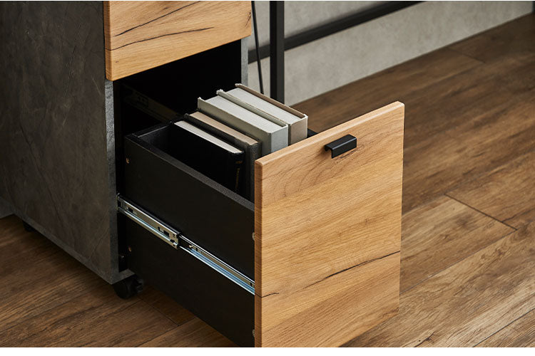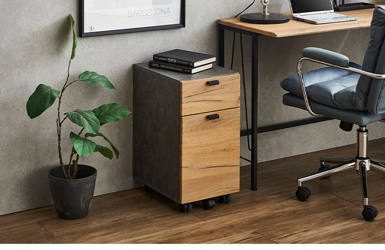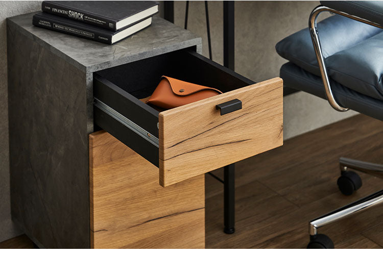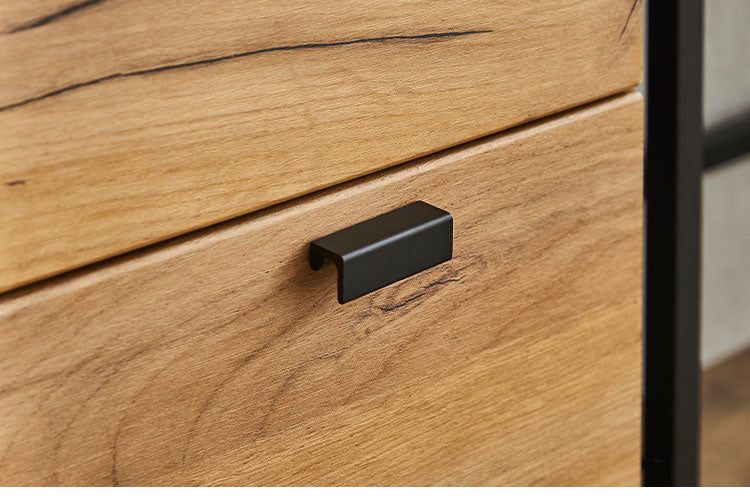リアルな質感の木目柄とスチールを組み合わせたシリーズ。