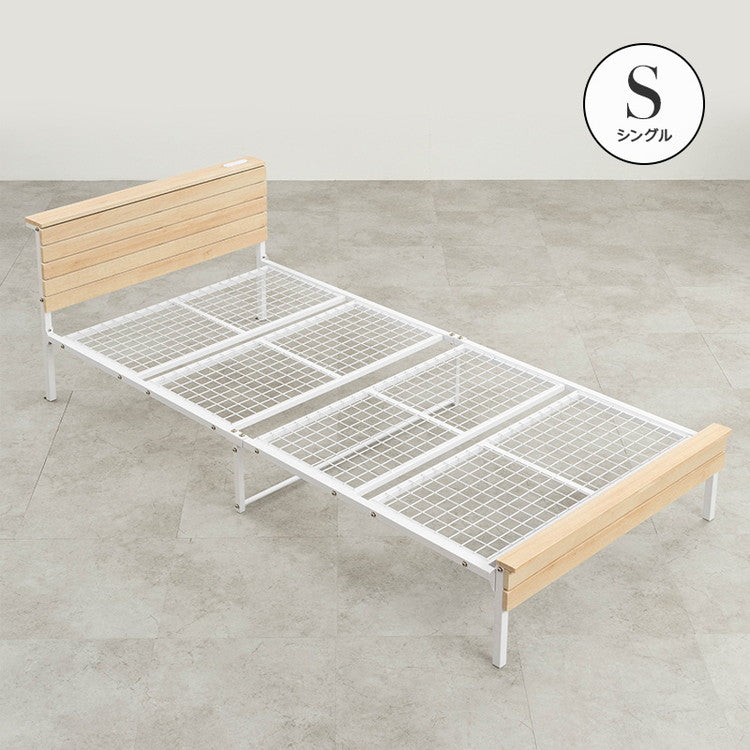 宮付きベッド 幅97cm 木目調 シングル 宮棚 コンセント付き 耐荷重100kg 通気性 メッシュ構造 パイプベッド スチールベッド 北欧風 おしゃれ かわいい 一人暮らし ワンルーム ベッドフレーム(代引不可)