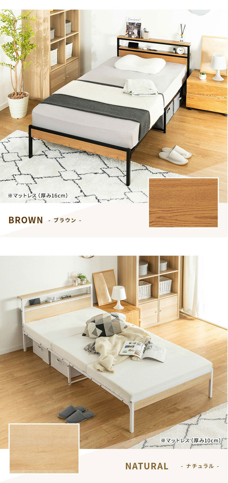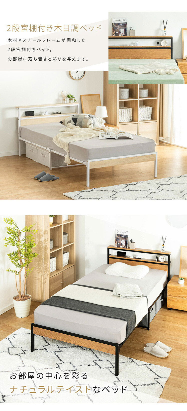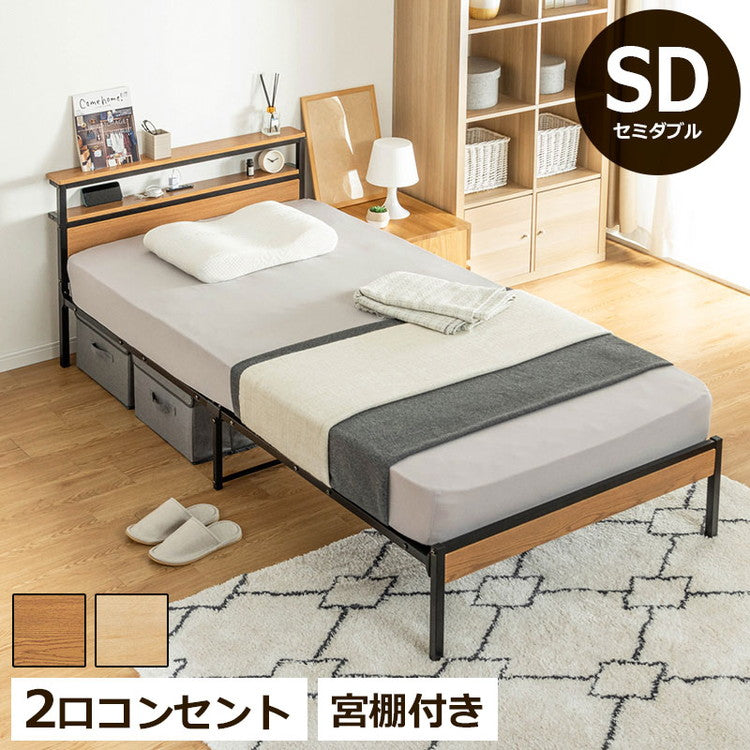 2段宮付きベッド 幅120cm セミダブル コンセント付き 耐荷重100kg 通気性 パイプベッド スチールベッド 収納スペース シンプル 宮棚 北欧風 おしゃれ かわいい 一人暮らし ワンルーム ベッドフレーム(代引不可)