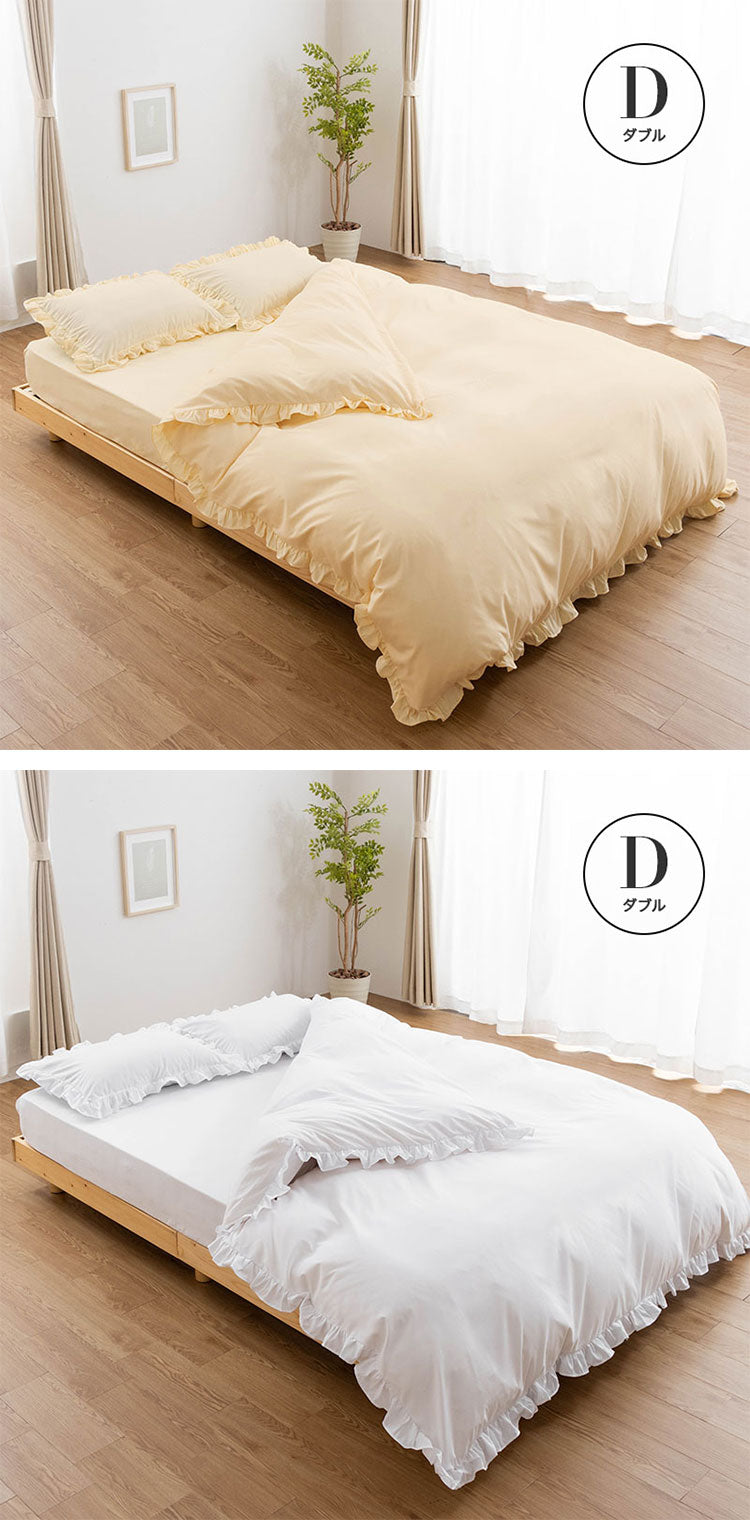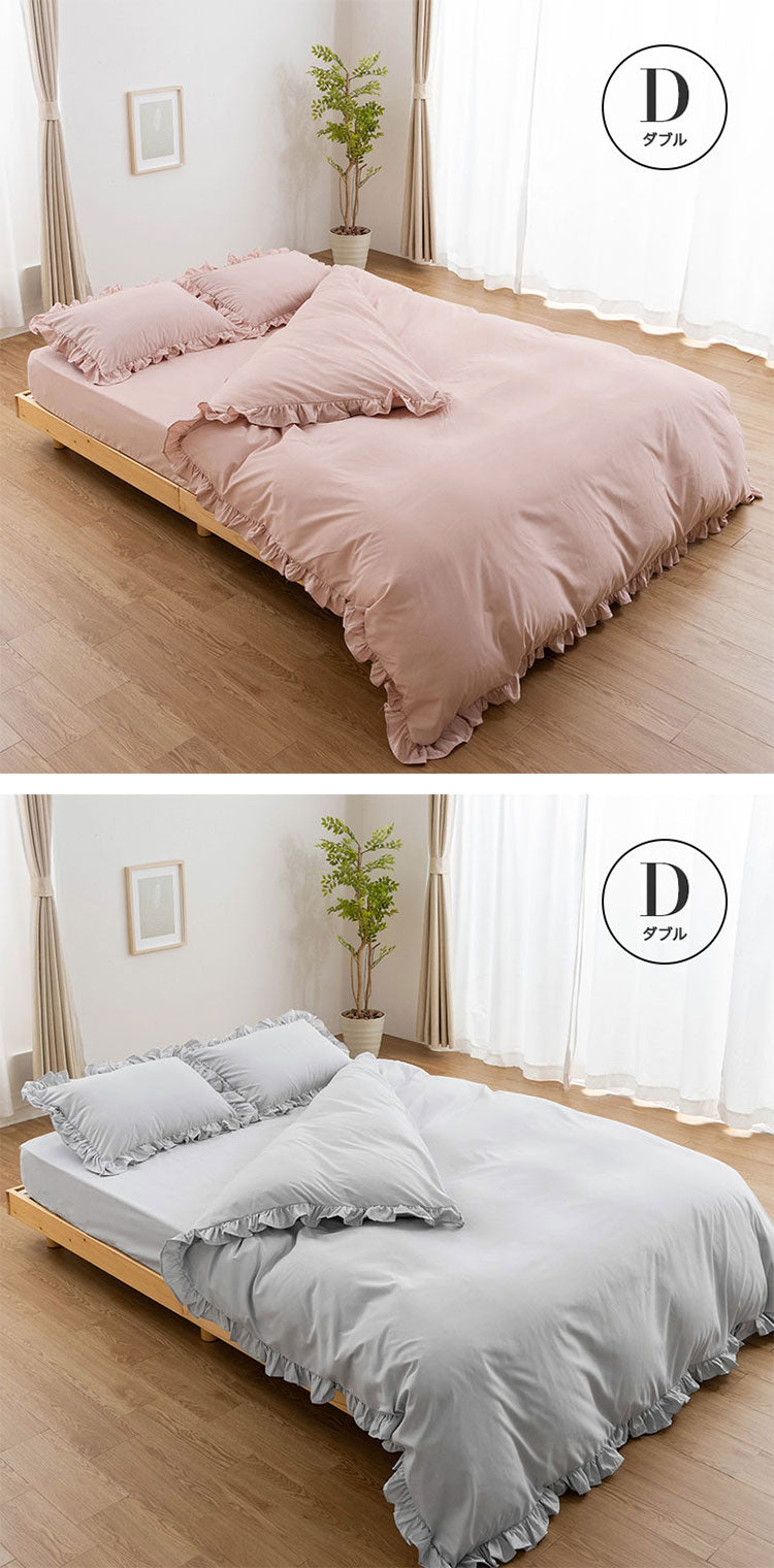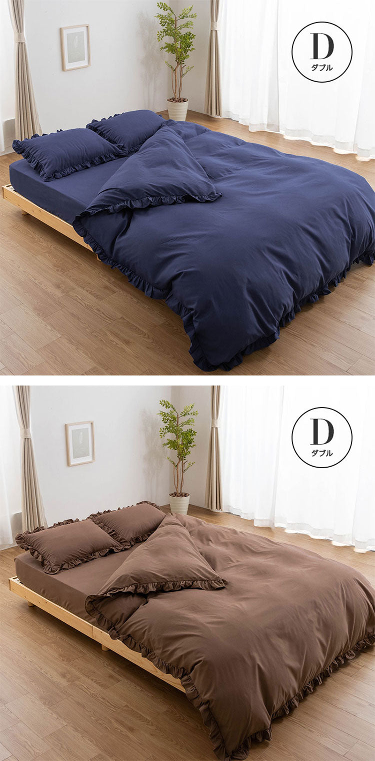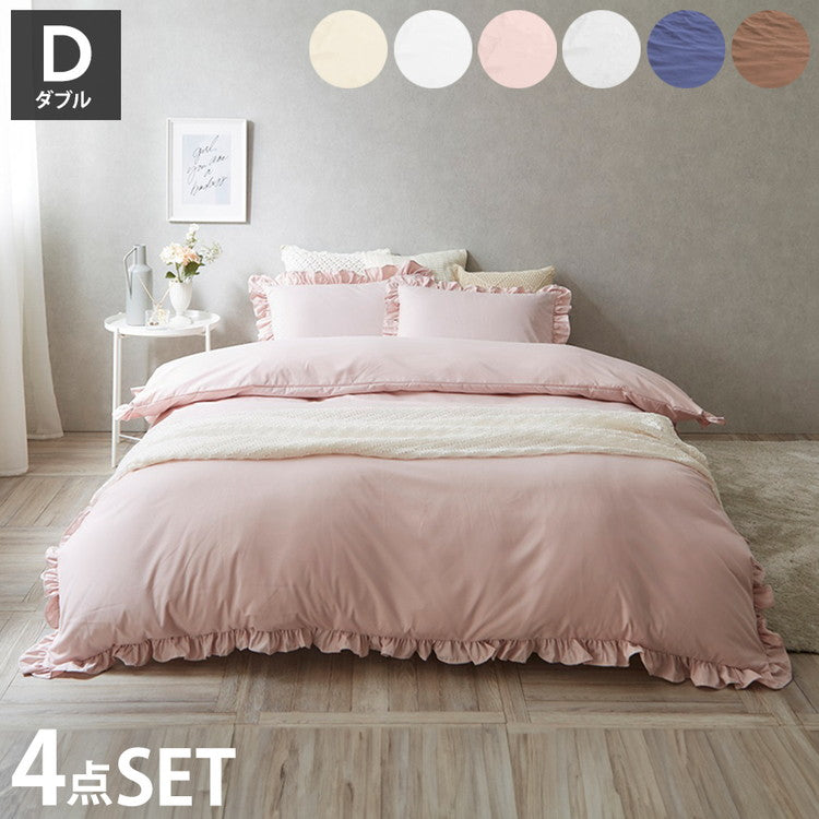 フリル付き布団カバーセット ダブル 4点セット 寝具 フリル付 掛布団カバー 枕カバー ボックスシーツ ピーチスキン加工 丸洗いOK オールシーズン インテリア おしゃれ かわいい 北欧(代引不可)
