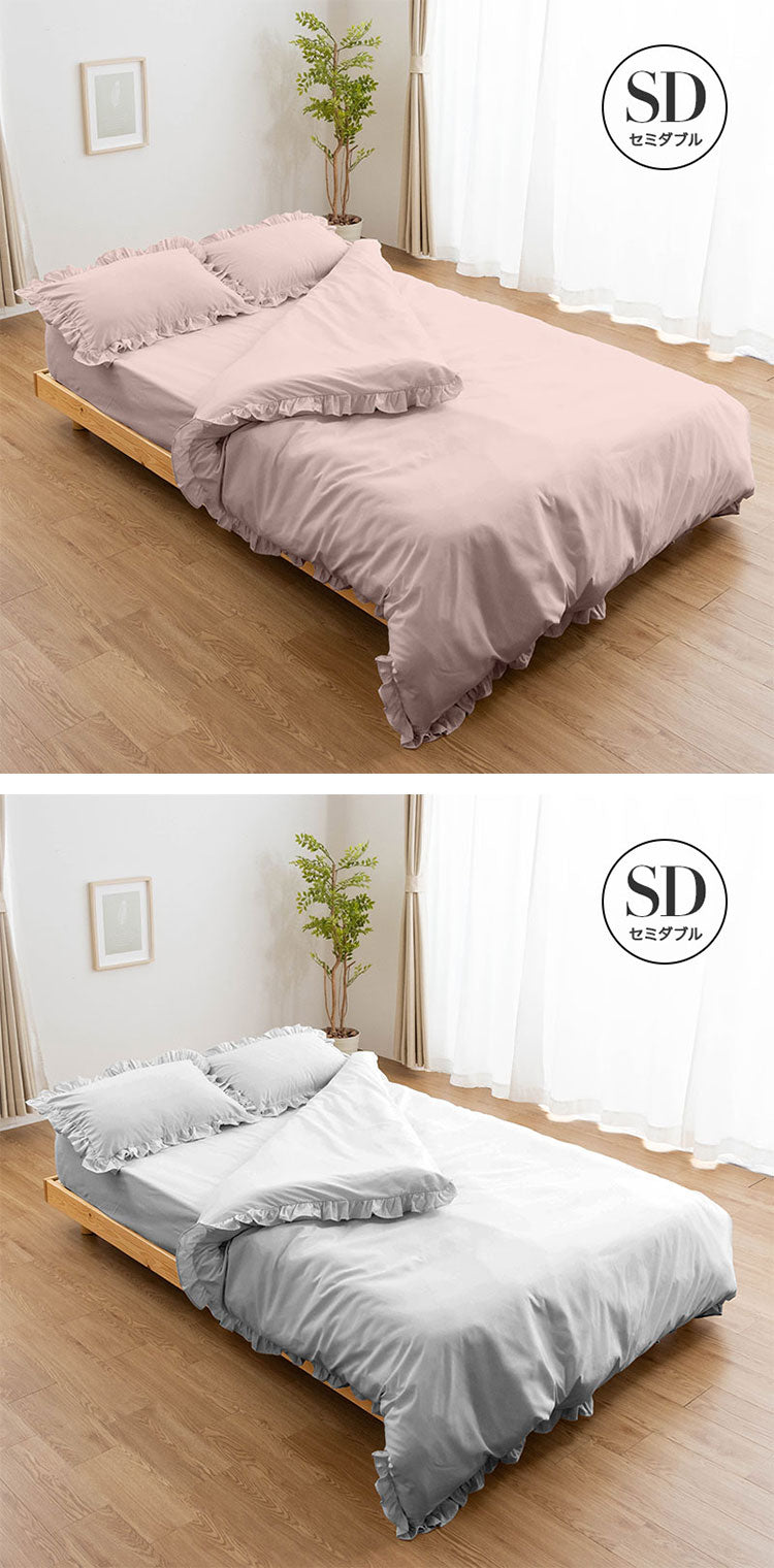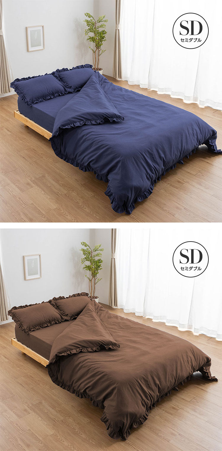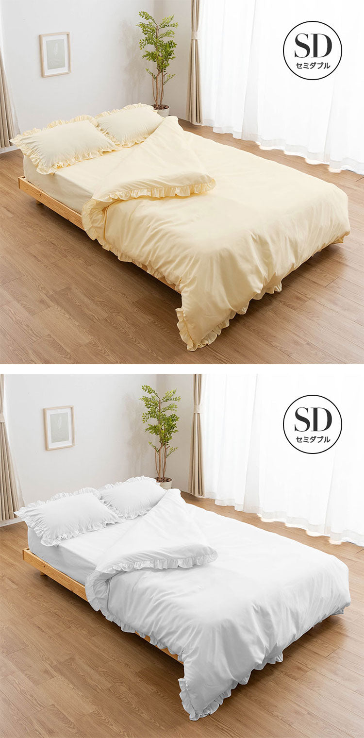 フリル付き布団カバーセット セミダブル 4点セット 寝具 フリル付 掛布団カバー 枕カバー ボックスシーツ ピーチスキン加工 丸洗いOK オールシーズン 寝具 インテリア おしゃれ かわいい 北欧(代引不可)