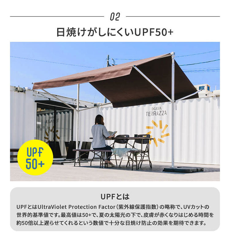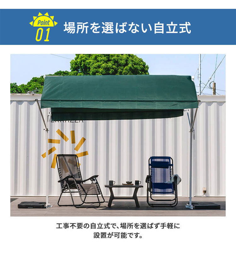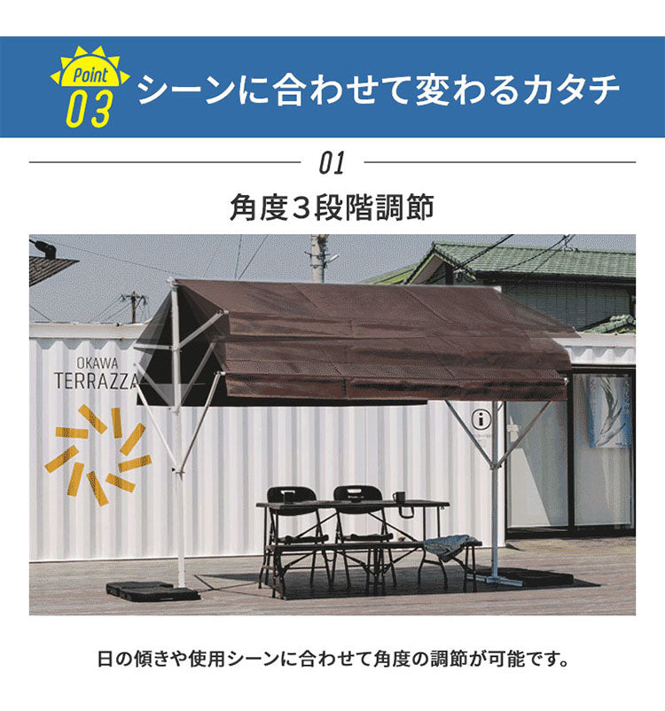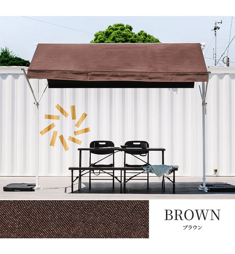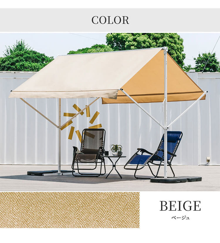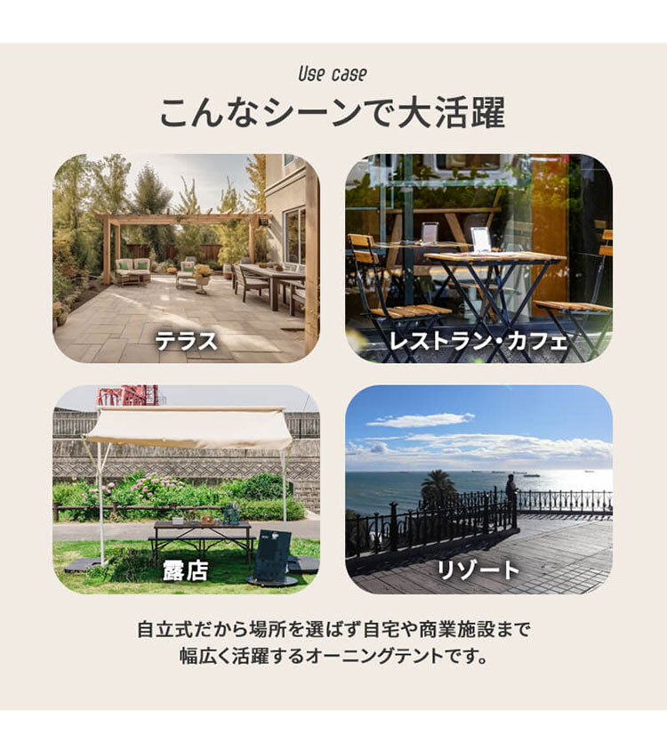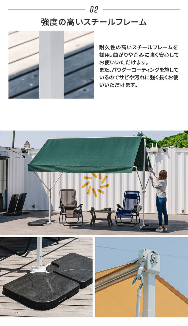 オーニングテント 自立式 幅390cm 撥水加工 折りたたみ 手動 白フレーム 折り畳み 伸縮 日除けテント 日除けシェード サンシェード スクリーン 日よけ 雨よけ ベランダ レストラン カフェ 露店(代引不可)