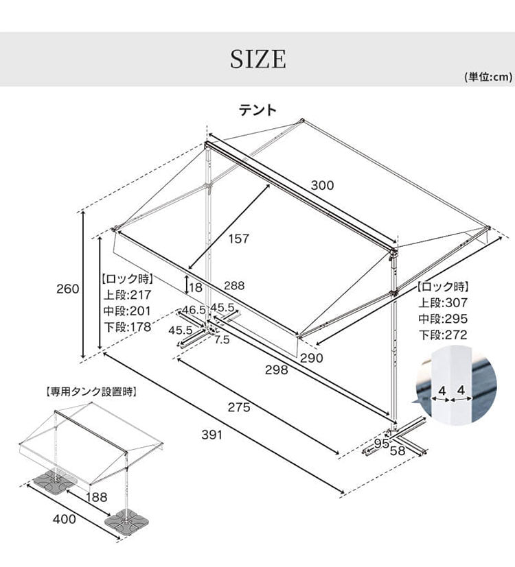 ※テントは必ず重り(タンク)を設置の上、ご使用ください。