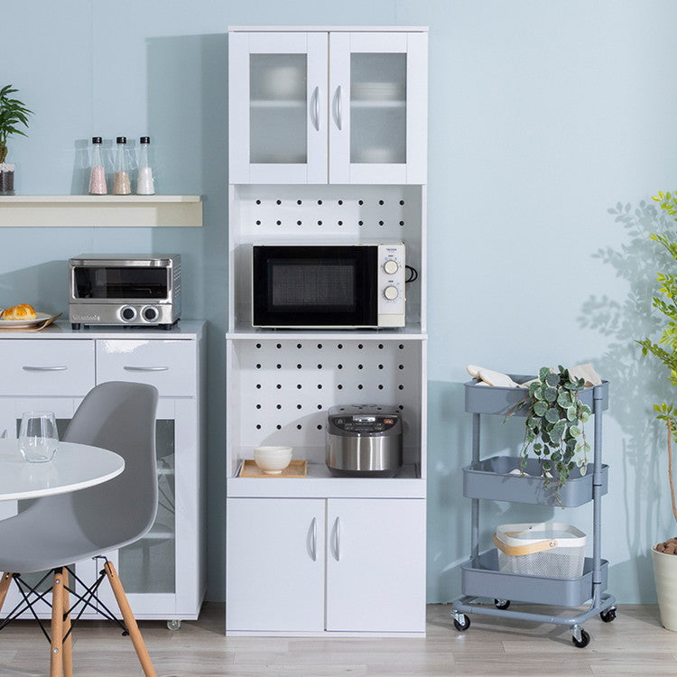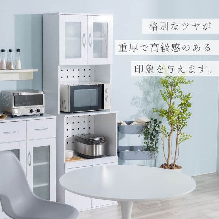 鏡面仕上げ 食器棚 幅59cm ベル 高さ180cm キッチンボード スライド棚付き レンジ台 カップボード キッチンキャビネット レンジ台 キッチン収納 すき間収納(代引不可)