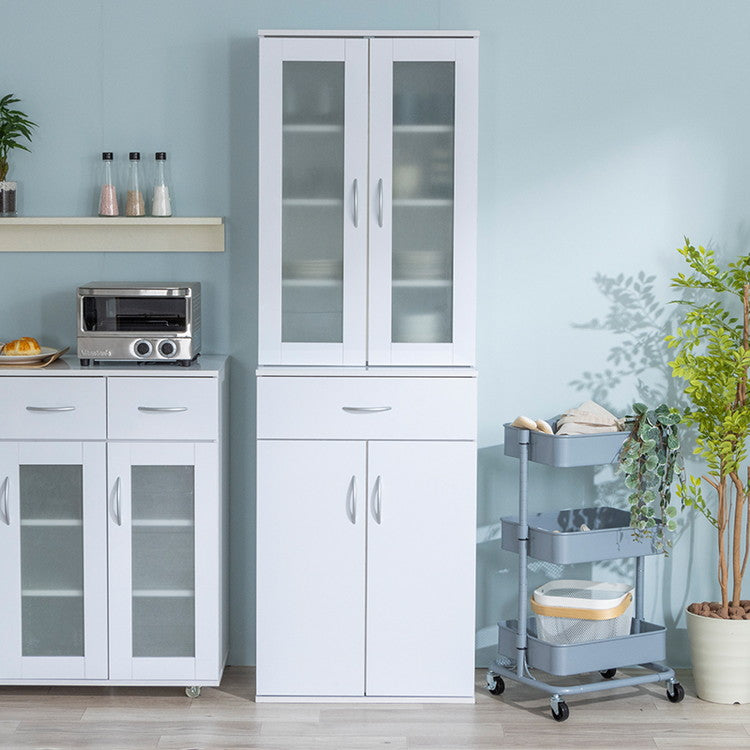 鏡面仕上げ 扉付き 食器棚 幅59cm ベル 高さ180cm キッチンボード 可動棚付き カップボード キッチンキャビネット キッチン収納 すき間収納(代引不可)