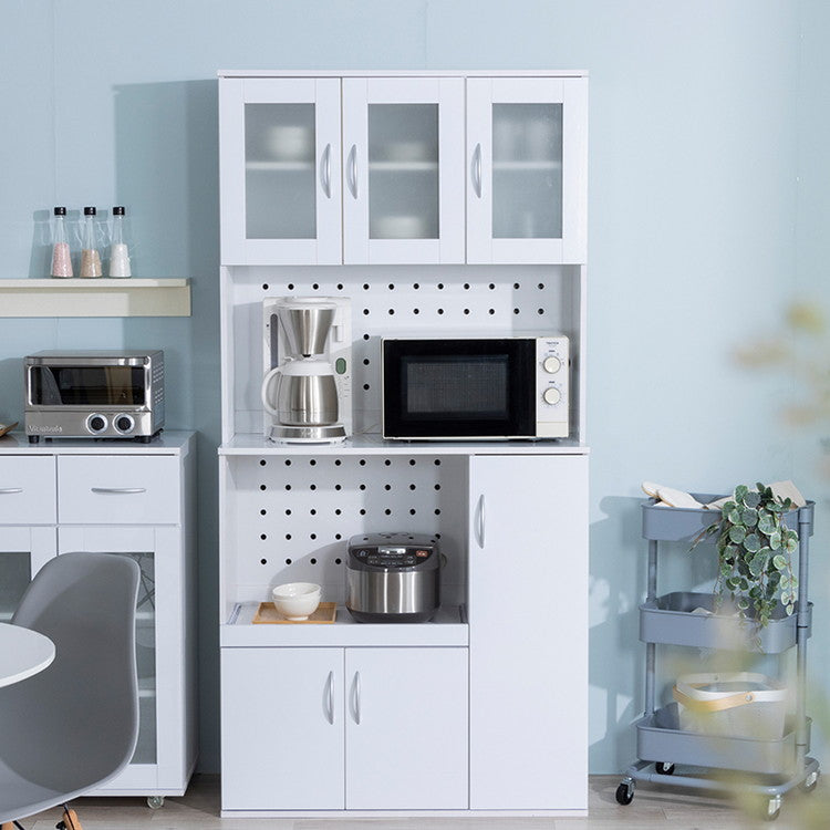 鏡面仕上げ 食器棚 幅89cm ベル 高さ180cm キッチンボード スライド棚付き レンジ台 カップボード キッチンキャビネット レンジ台 キッチン収納(代引不可)
