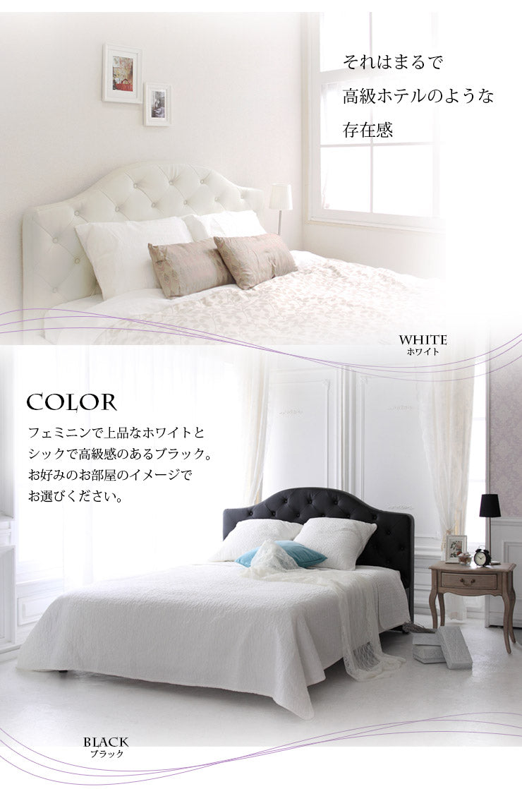 高級感あふれるハイバックレザーベッドです。ヘッドボード、サイドフレーム、ヘッドボードにフェイクレザーを使用し、木脚のデザインにもこだわり、優雅さ演出する仕上げとなりました。ヘッドボードのボリューム感とゴージャスさを演出するためにボタン止めとステッチ加工を施しました。またフレームの中にマットレスが収まるマットレス落とし込み方式を採用し、マットレスのズレを防止や全体のバランスを崩さずハイバックのヘッドボードデザインを実現しました。床板はすのこを使用しており、湿気の多い夏場でも通気性抜群でマットレスがカビにくくなっています。