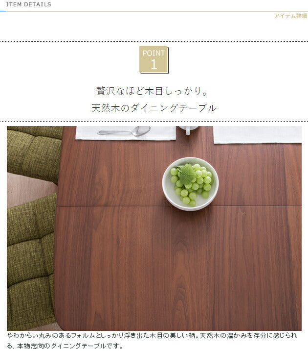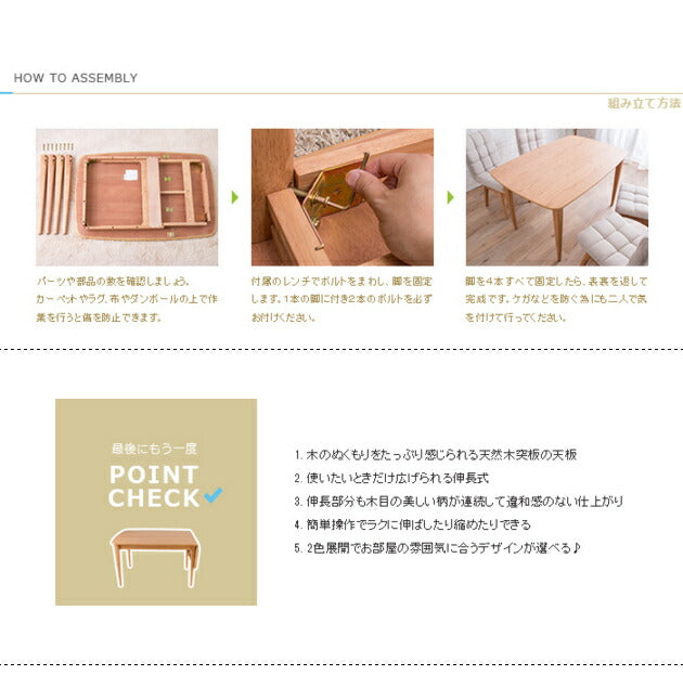 天然木の木目が美しい伸長式ダイニングテーブル。