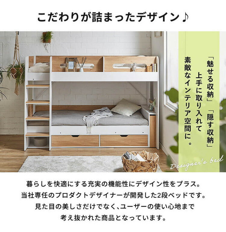 「魅せる収納」×「隠す収納」を取り入れたこだわりが詰まったデザインの2段ベッド。