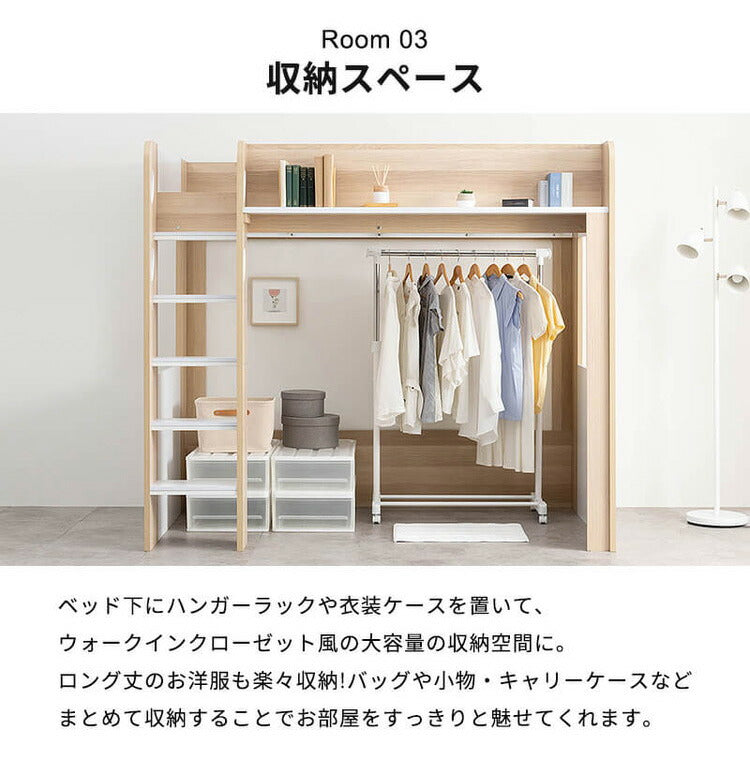 ロフトベッド シングル ハイタイプ ベッド下収納 子供部屋 システムベッド 収納 収納付き 木製 フレーム 子供 キッズ 一人暮らし 寮 ゲストハウス 民泊 ロフト ベッド ワンルーム シンプル(代引不可)