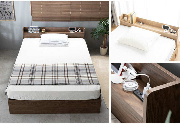 宮棚・コンセント2個口付き収納ベッド シングル