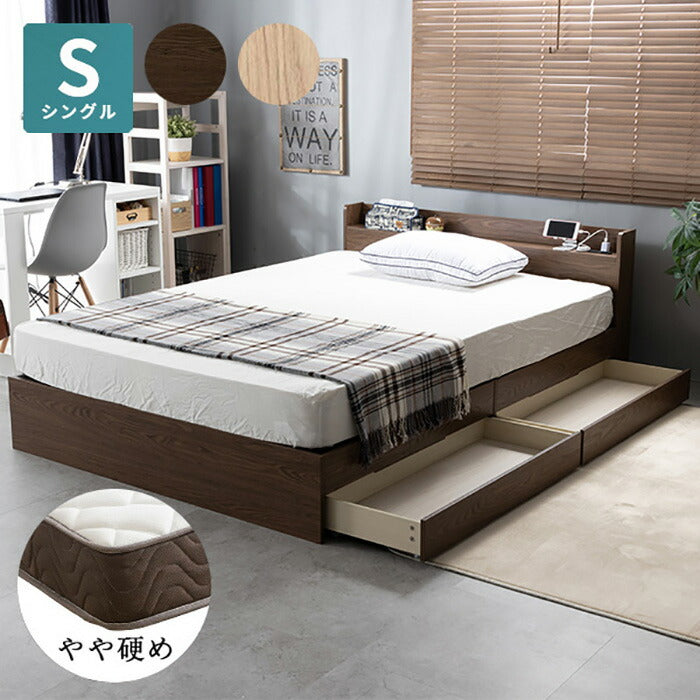 収納ベッド 収納付きベッド シングル 硬め ポケットコイルマットレス付き 宮棚・コンセント付き 引き出し2杯チェスト 大容量収納 すのこベッド 大型シングルベッド 収納ベッド 収納付きベッド(代引不可)