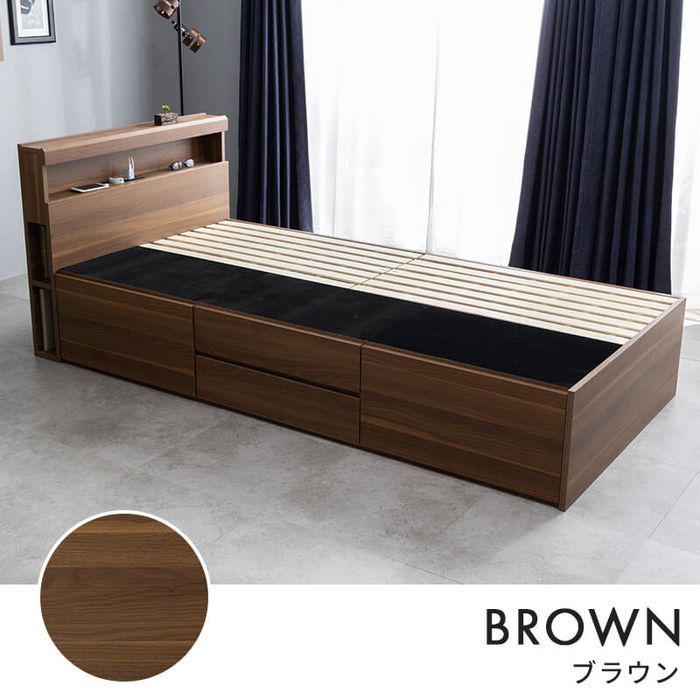 チェストベッド 収納付きベッド シングル フレームのみ 宮棚・コンセント付き 引き出し4杯チェスト 大容量収納 すのこベッド 大型シングルベッド 収納ベッド 収納付きベッド ヘッドボード(代引不可)