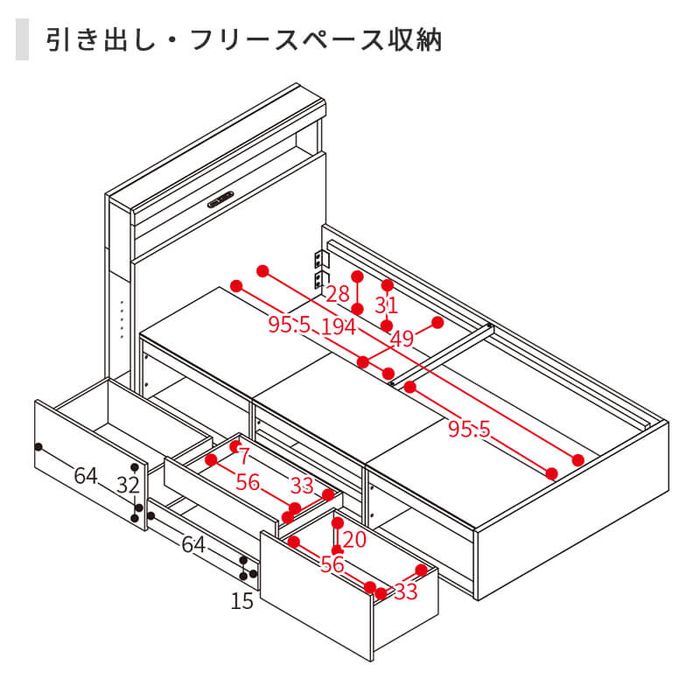 引き出し4杯チェスト収納 棚・コンセント付きベッド シングルフレーム