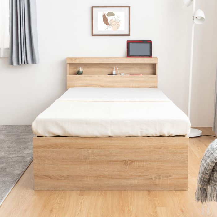 引き出し4杯チェスト収納 棚・コンセント付きベッド シングル