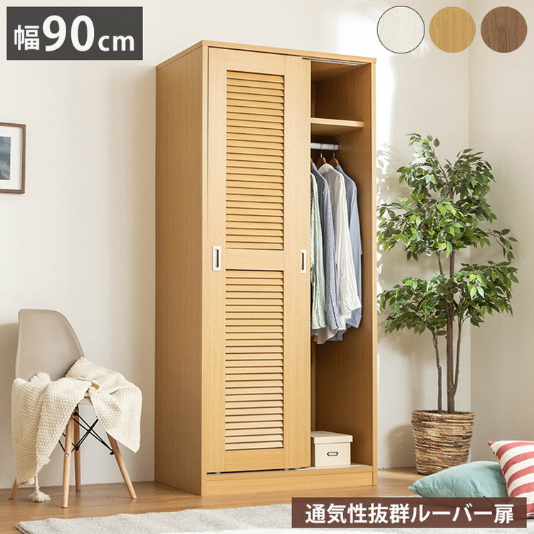 大容量ワードローブ 幅90cm クローゼット ルーバー扉 壁面収納 衣類収納 ワードローブ クローゼット ハンガーラック 衣類 洋服 収納 引き戸 扉 おしゃれ ルーバー 棚板 壁面収納 衣類収納(代引不可)