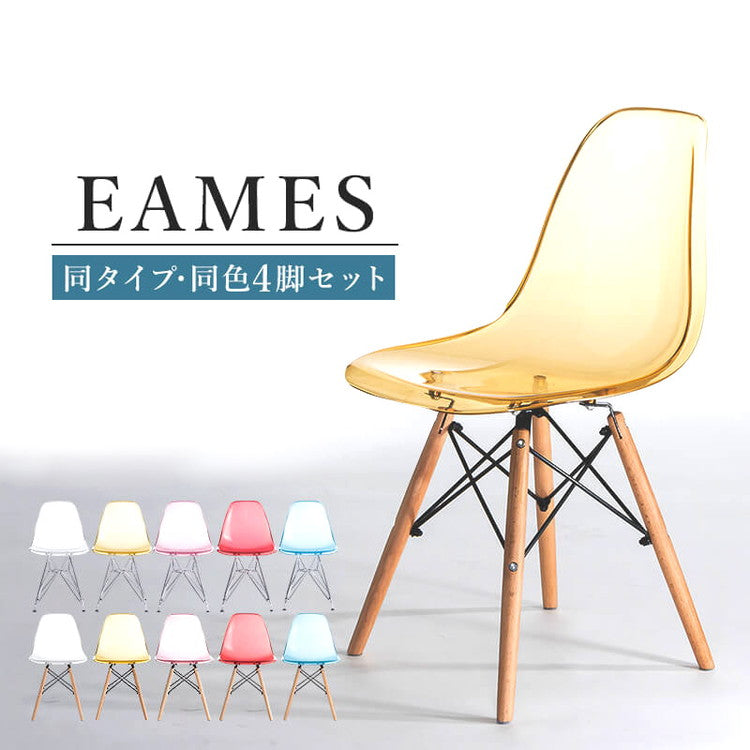 イームズチェア リプロダクト クリアタイプ 4脚セット 木脚 スチール脚 DSR DSW イームズシェルチェア シェルサイドチェア ダイニングチェア デザイナーズチェア デザイナーズ家具 椅子イス(代引不可)