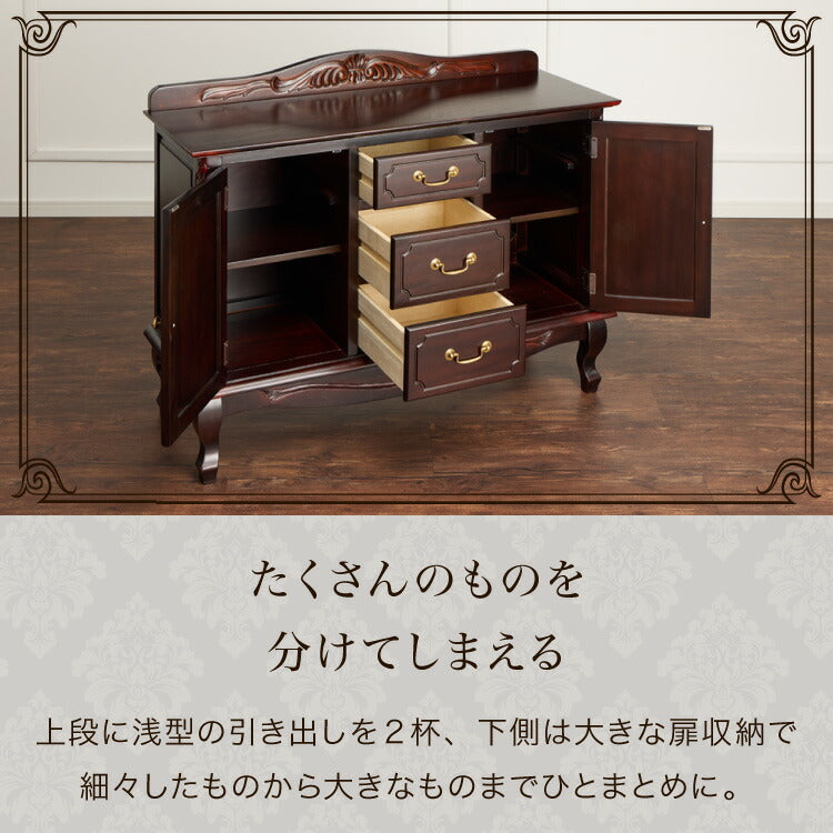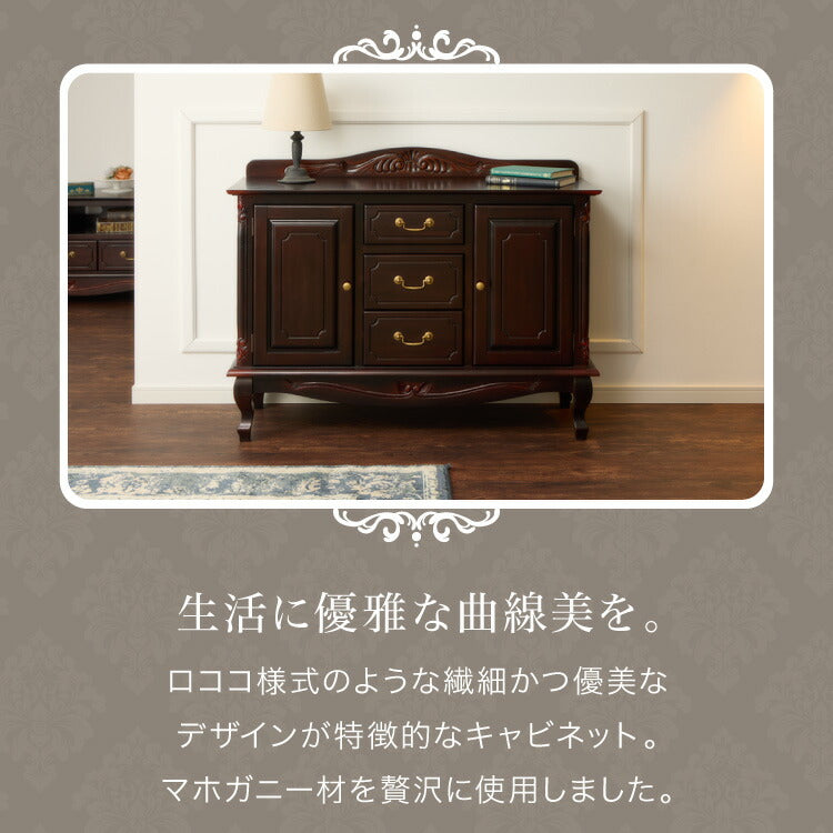 キャビネット 幅110cm マホガ二ー材 完成品 ブラウン 高級感 エレガント ブラウン ミニチェスト ローチェスト タンス チェスト 収納 天然木 木製 引き出し 大容量 コンパクト 省スペース 上品 優雅(代引不可)