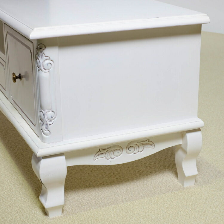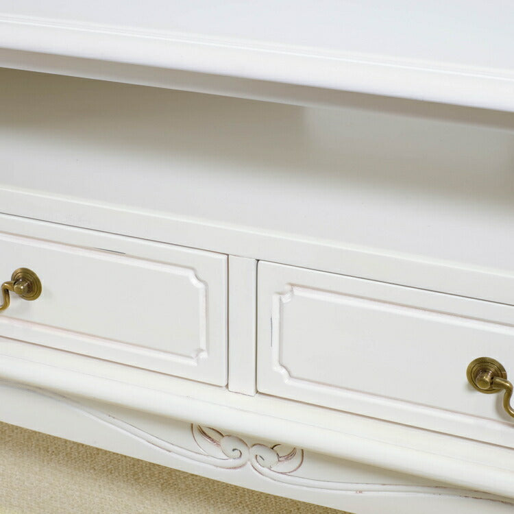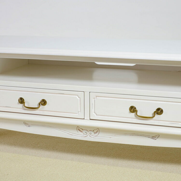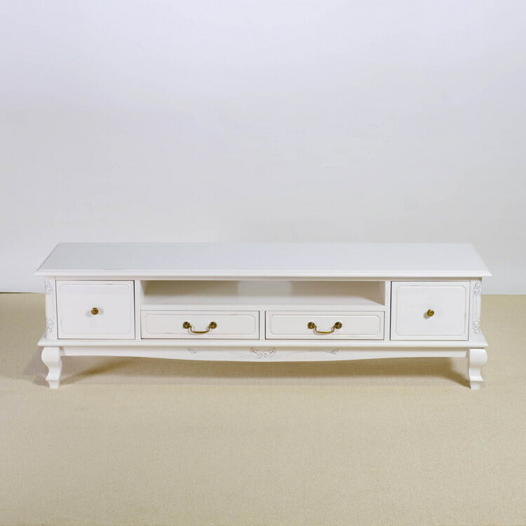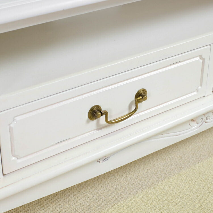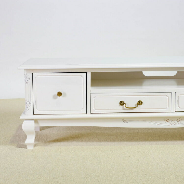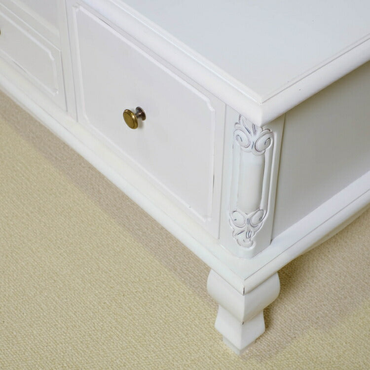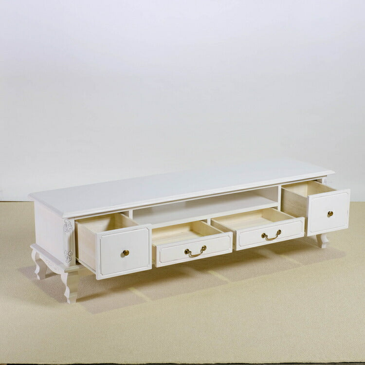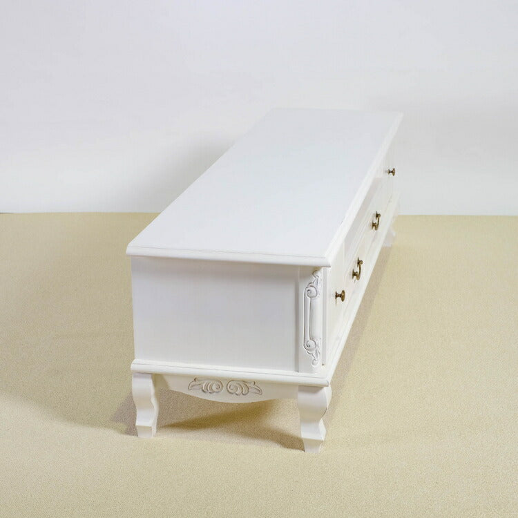 ローボード 幅150cm マホガ二ー材 完成品 ホワイト 高級感 エレガント ホワイト テレビ台 TV台 テレビボード リビングボード 収納 天然木 木製 引き出し 大容量 コンパクト 省スペース 上品 優雅(代引不可)