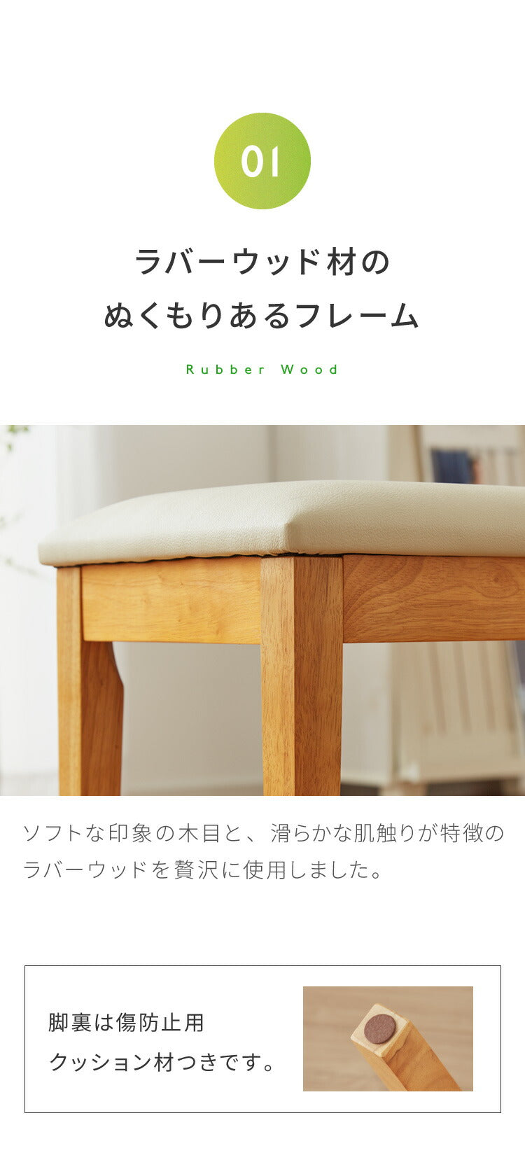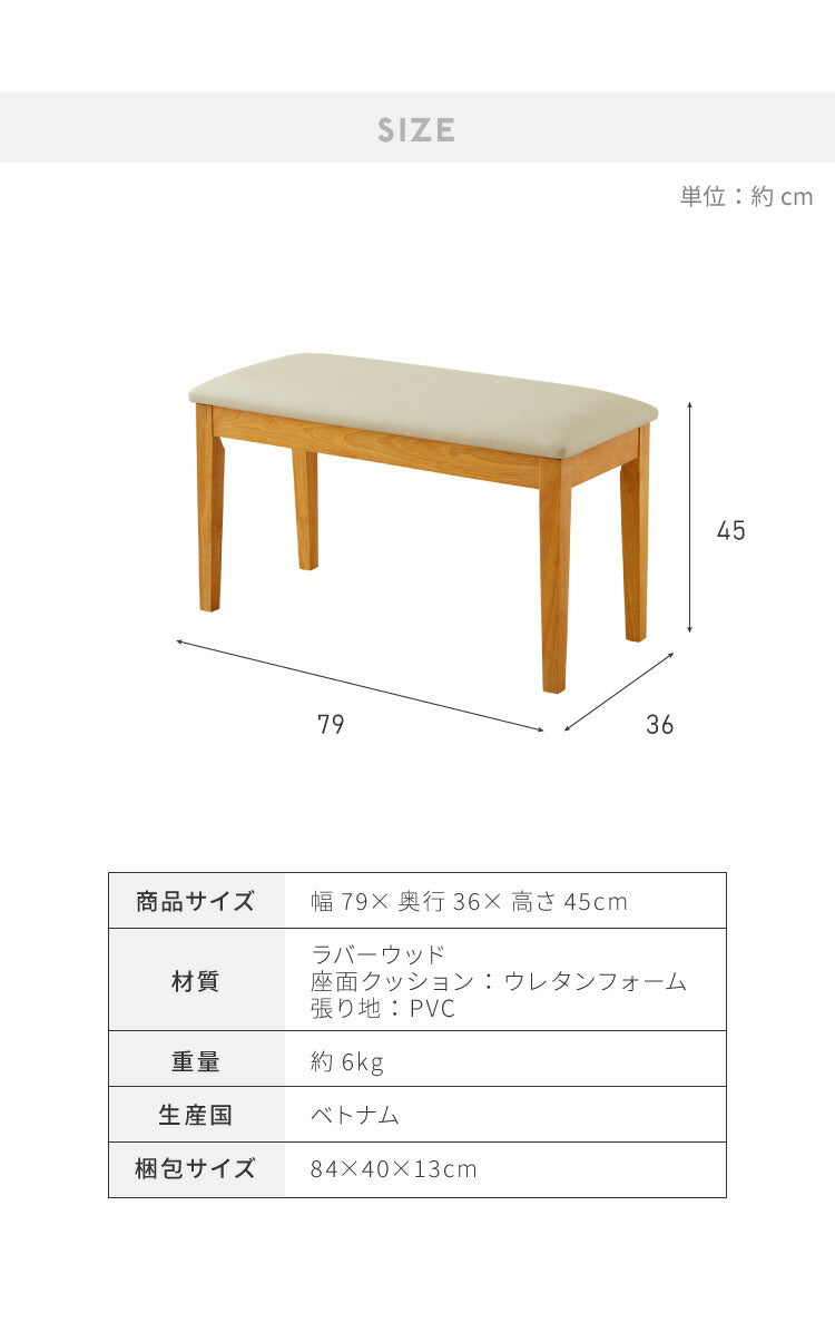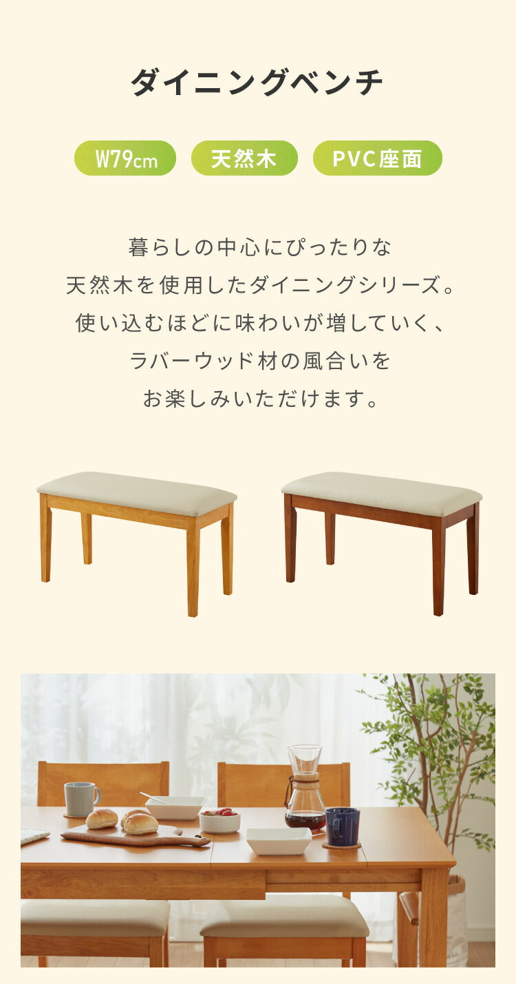 ダイニングベンチ 2人掛け 幅79cm 2人用 天然木 ラバーウッド 木製 ウレタン クッション おしゃれ 北欧 モダン カントリー PVC 新生活 省スペース ナチュラル ブラウン(代引不可)