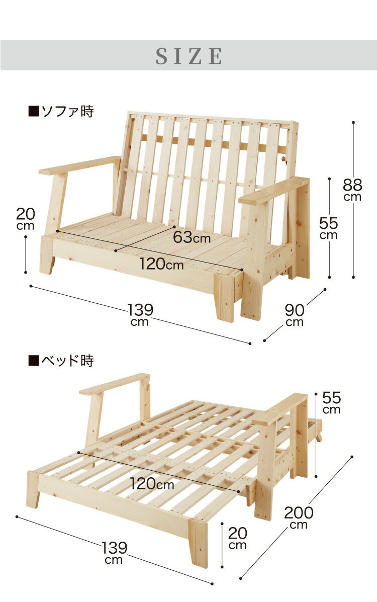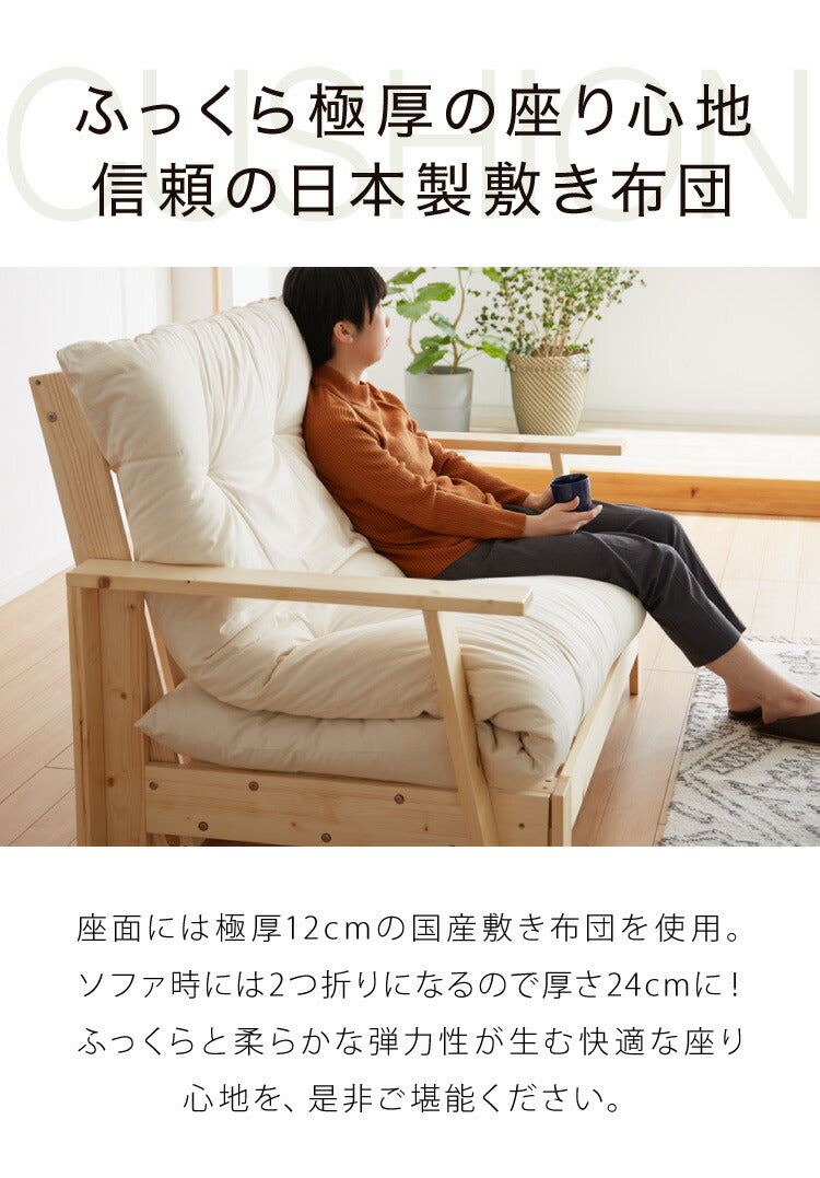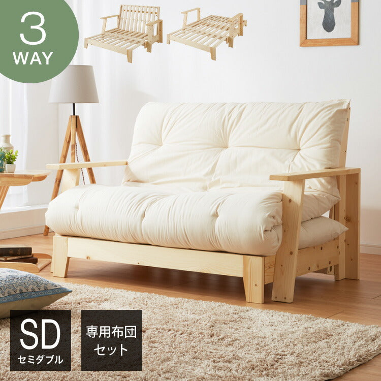 ソファベッド 3WAY 専用布団セット セミダブル 天然木 ベッド カウチソファ 2Pソファ 2人掛け パイン材 マルチソファベッド 伸長式 すのこベッド 背もたれ 肘掛け おしゃれ 北欧 一人暮らし 新生活(代引不可)