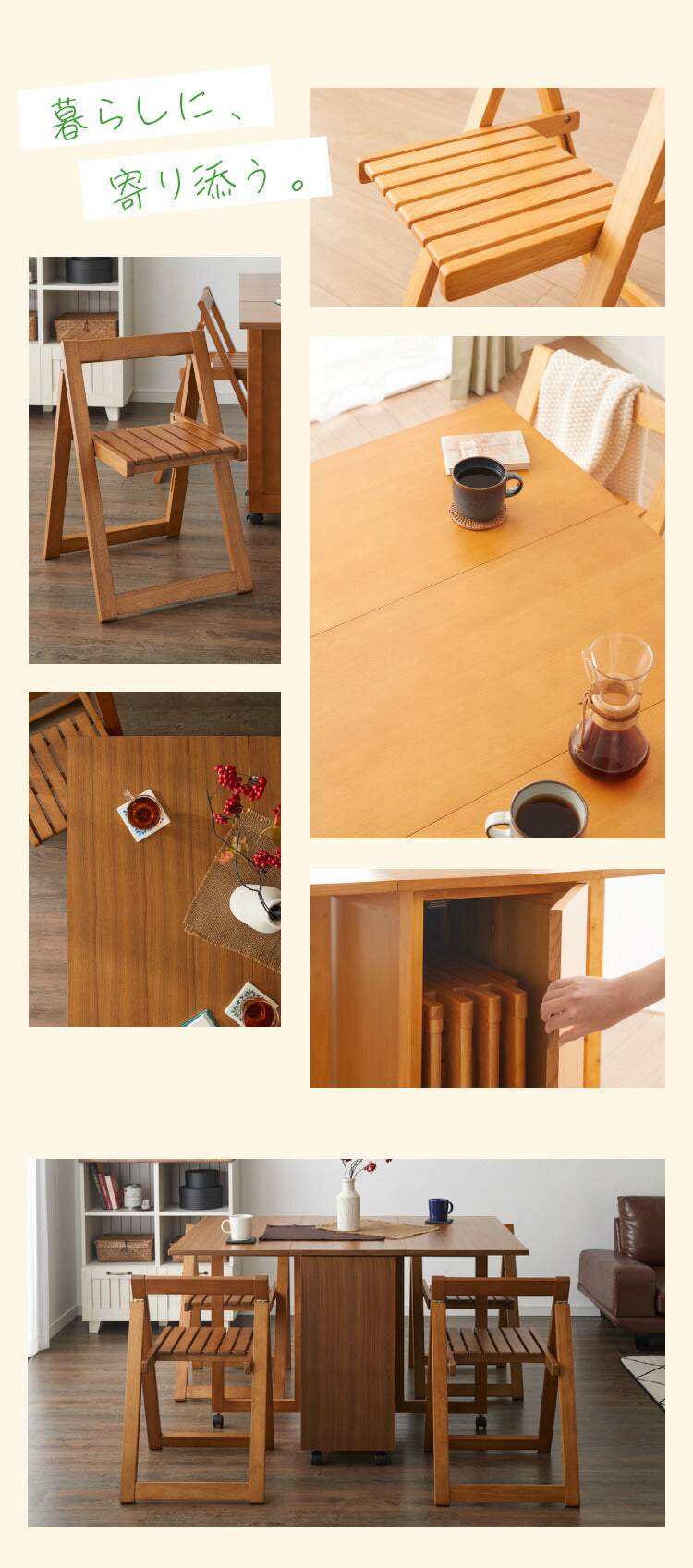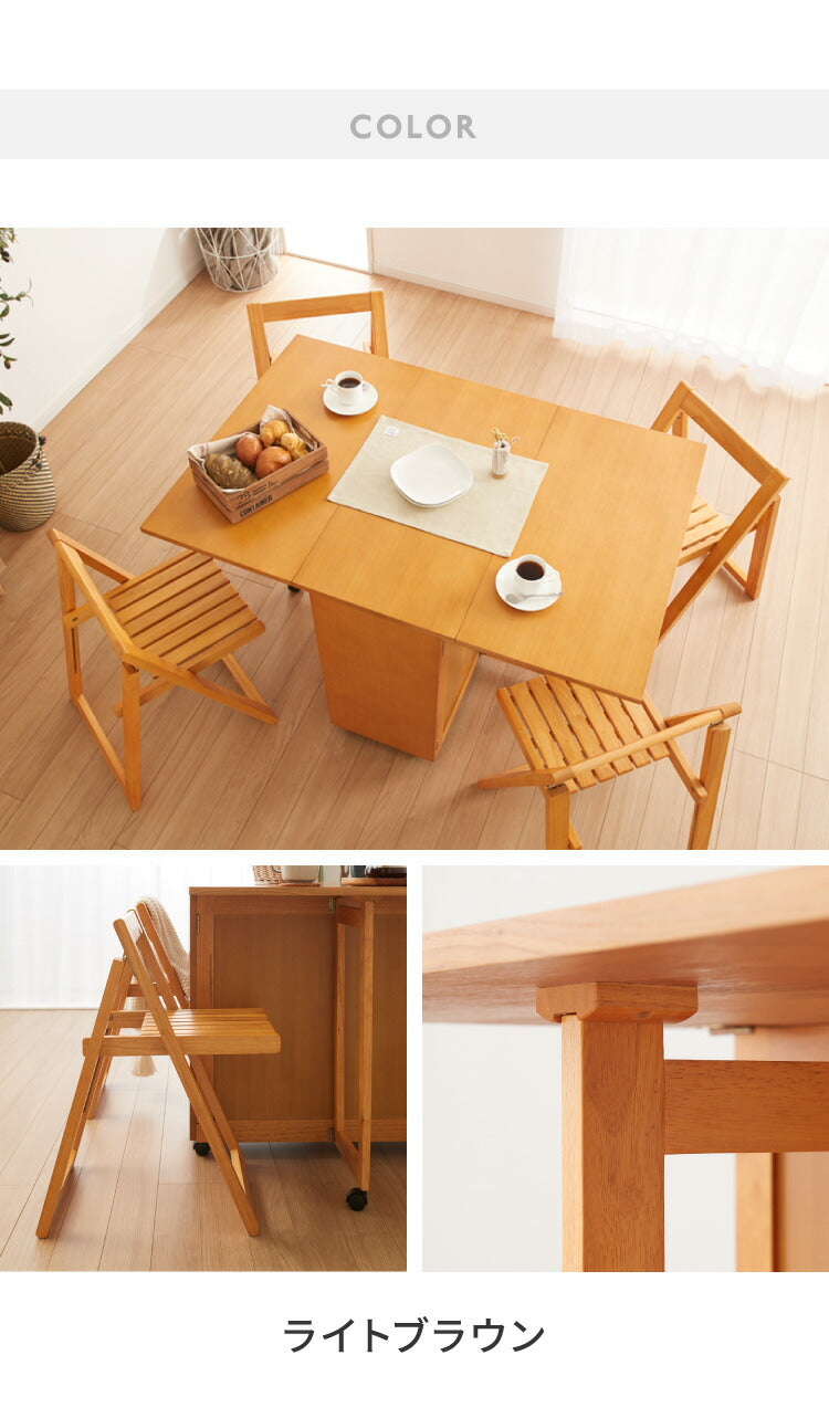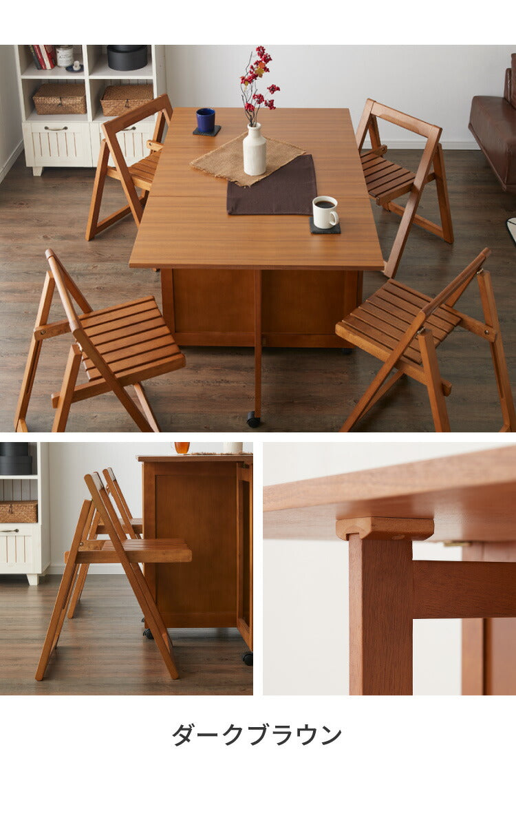ダイニングテーブル 5点セット 木製 天然木 ダイニングセット バタフライダイニング キャスター付き ワゴン チェア収納 来客用 省スペース ダイニングテーブルセット 新生活(代引不可)