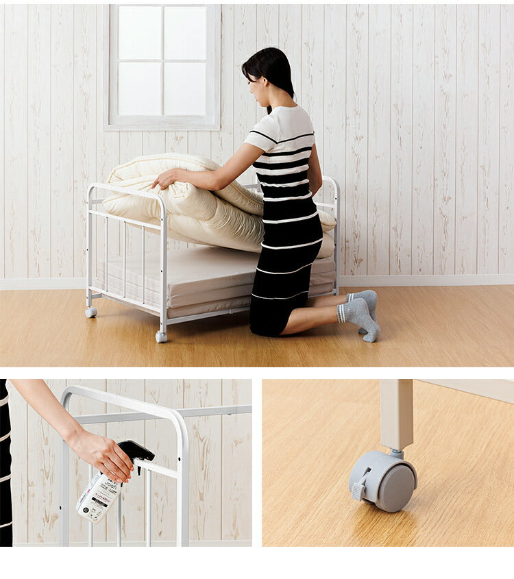 キャスター付きなので移動もらくらく、押し入れ、クローゼットへの出し入れも便利です。