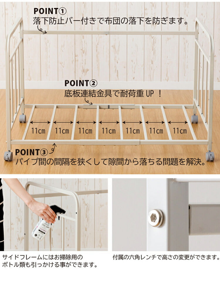 布団ラック3段階調整 耐荷重 50kg 布団落下防止機能 ストッパー機能キャスター付き ふとん収納 布団 棚 毛布 マットレス 収納 ウォークイン クローゼット 布団収納ラック 台 押し入れ収納