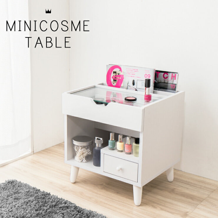 ドレッサー ミニコスメテーブル メイクボックス マガジンラック アクセサリー収納 サイドテーブル ガラステーブル チェスト(代引不可)