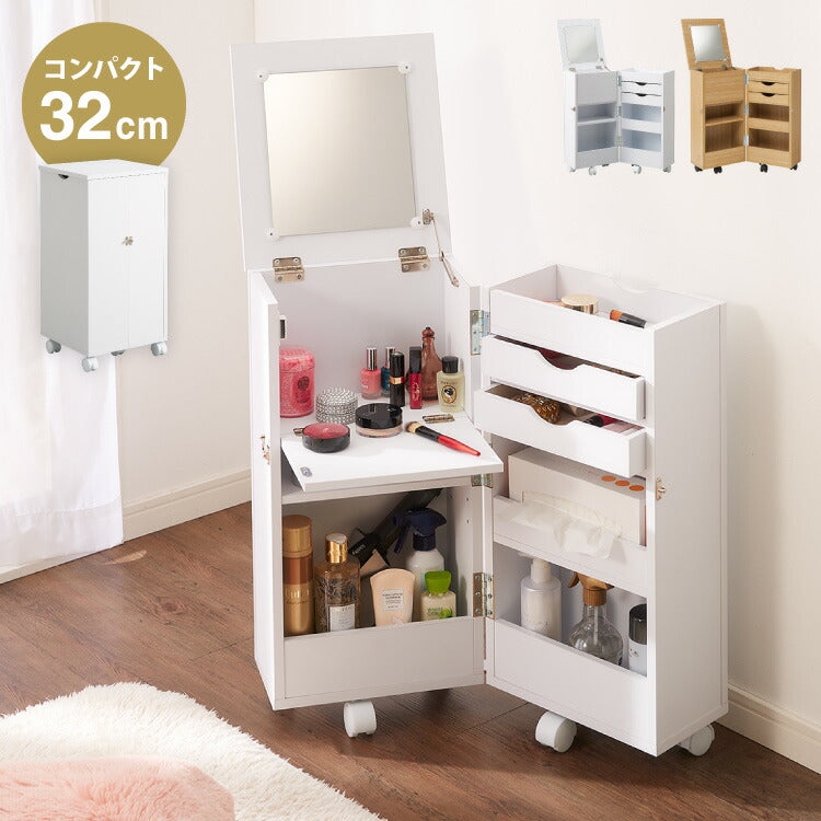 完成品 ドレッサー デスク テーブル 化粧台 ミラー付き 収納ワゴン コスメワゴン キャスター付き 鏡付き 収納 シンプル コンパクト ワゴン メイクボックス 大容量(代引不可)