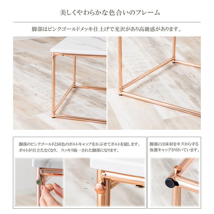 ・石目調の天板にピンクゴールドメッキのフレームを組み合わせた可愛らしいリビング家具