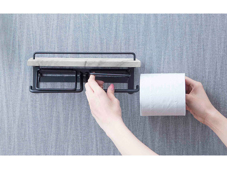 トイレットペーパーホルダー ダブル ペーパーホルダー 収納 大理石調 おしゃれ トイレ収納 収納 シンプル 台付き スタイリッシュ(代引不可)