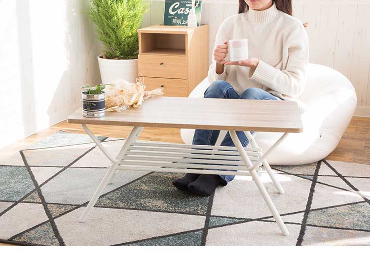 テーブル 折りたたみ ローテーブル センターテーブル 幅75cm リビングテーブル 折り畳みローテーブル 折れ脚テーブル デスク ローデスク 木製折りたたみテーブル シンプル 折り畳み 棚付き 完成品(代引不可)