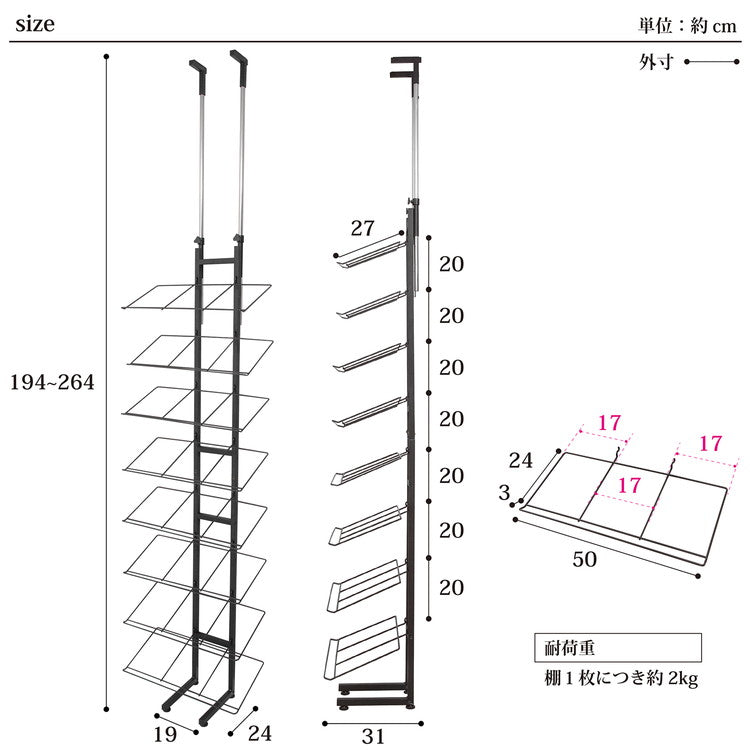 ・場所をとらずに、シングルタイプは最大8足、ダブルタイプは最大16足収納できます。