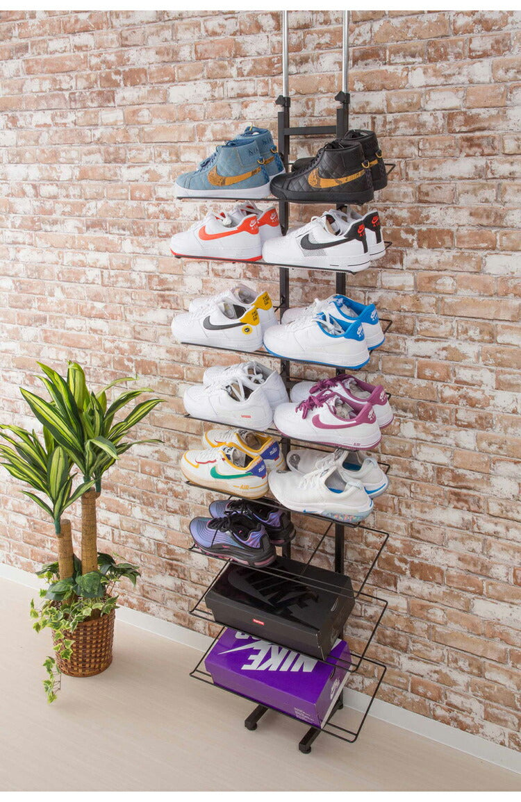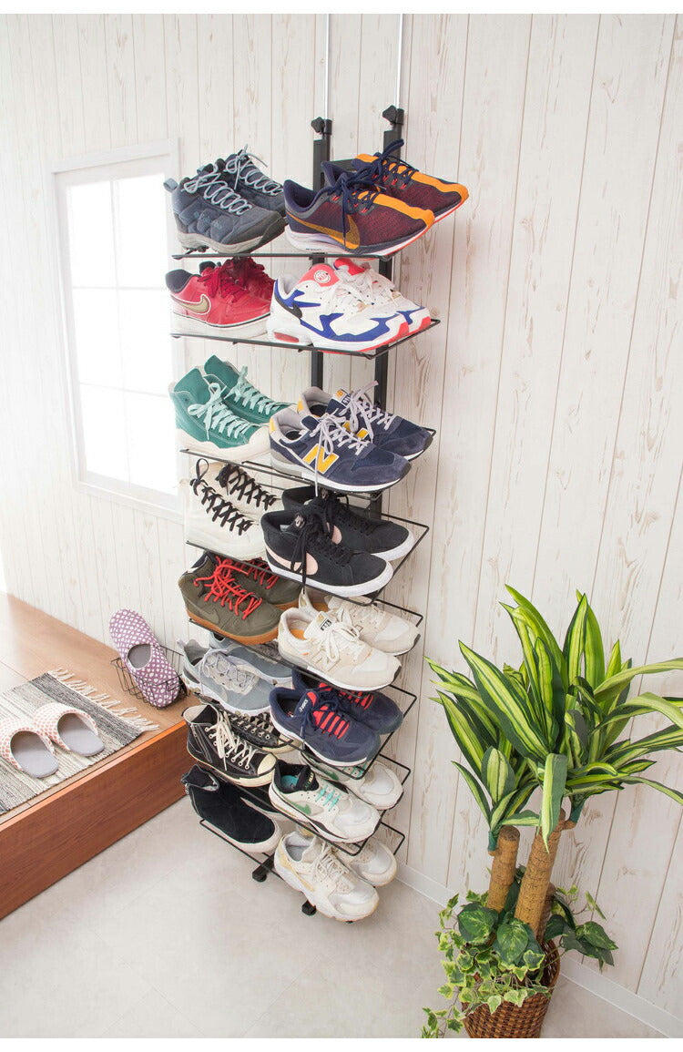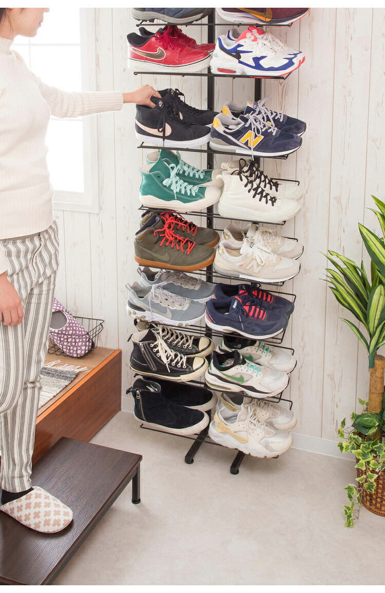 ・ワイヤー棚の角度は20度の傾斜なので、スニーカーがよく見える角度で、取り出しやすくなっています。